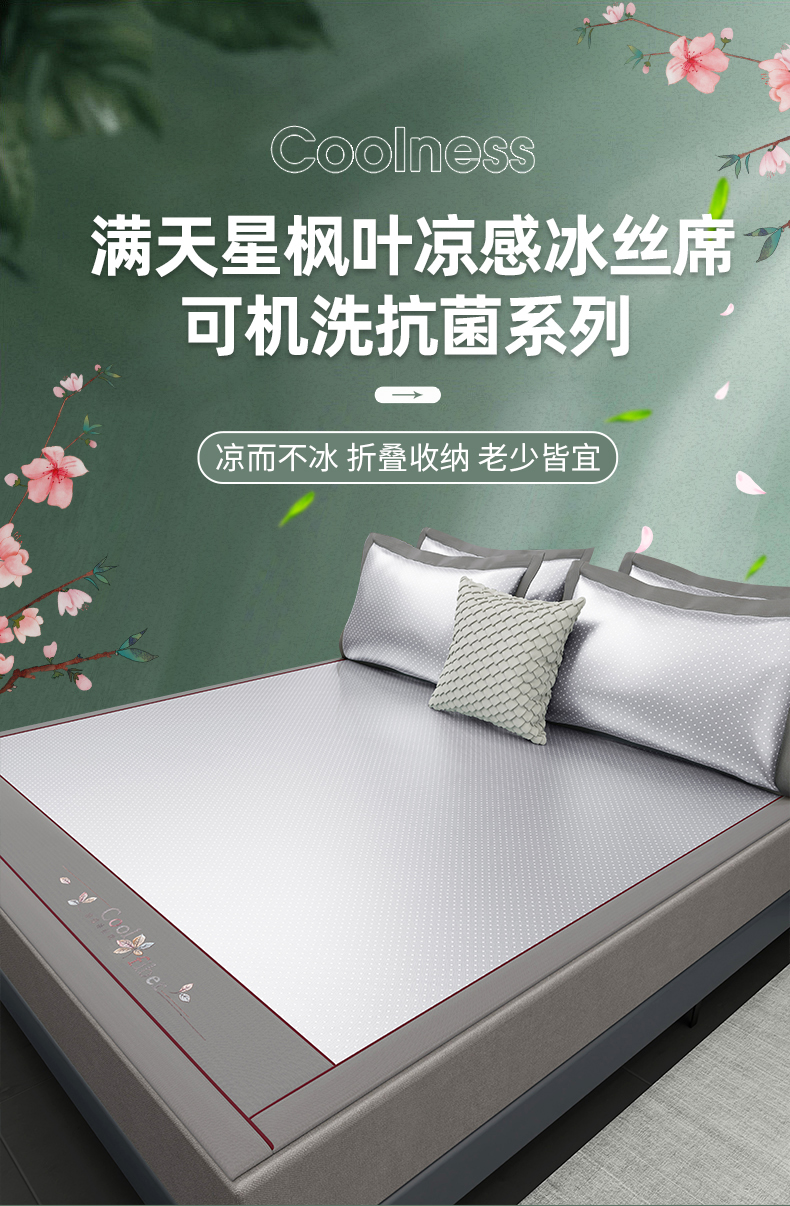 商品名称:小牛席业2025新款A类满天星枫叶凉感冰丝席(凉感系列)凉席藤席冰藤席冰丝席竹席草席空调席乳胶席豆豆席 蓝色