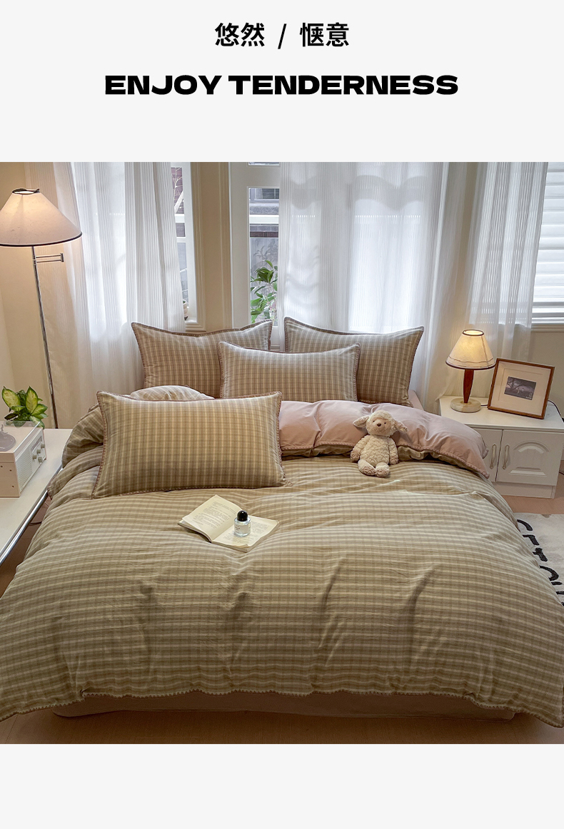 (总)蓝邻家纺 2025新款色织三层纱磨毛四件套系列,洛丽塔-灰,洛丽塔-米,摩登深林-兰,叶茂-咖,叶茂-深灰,长夏-桔咖,长夏-深蓝