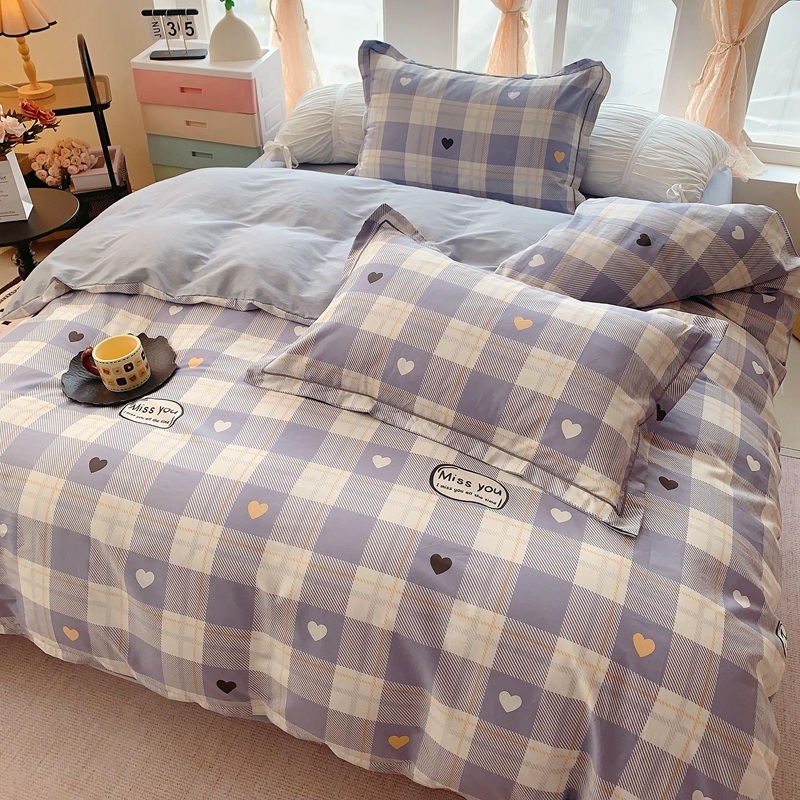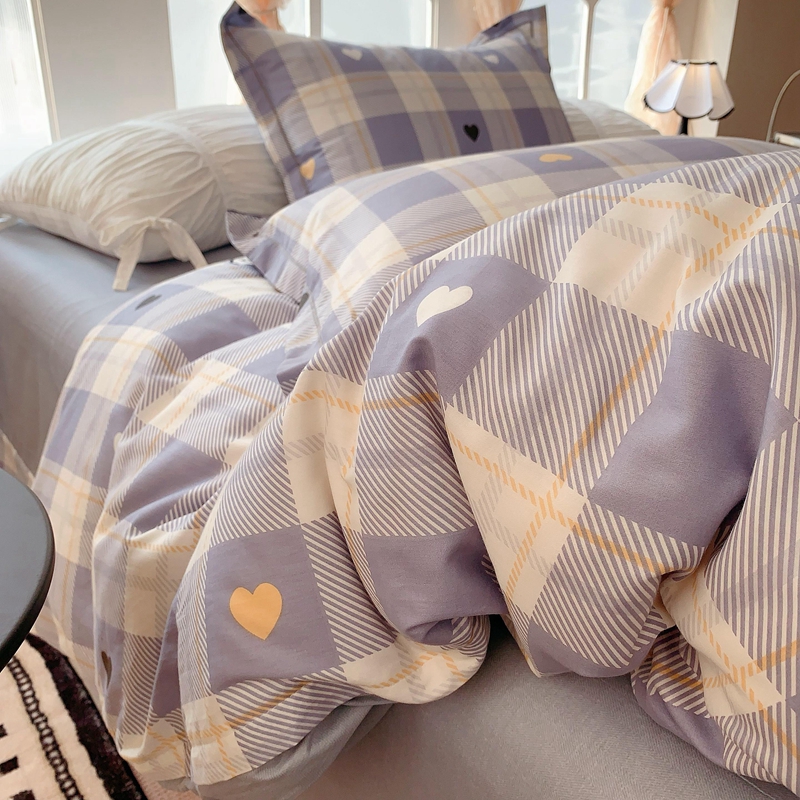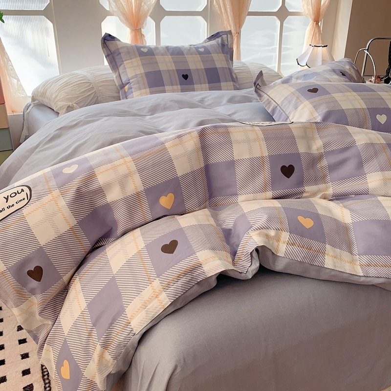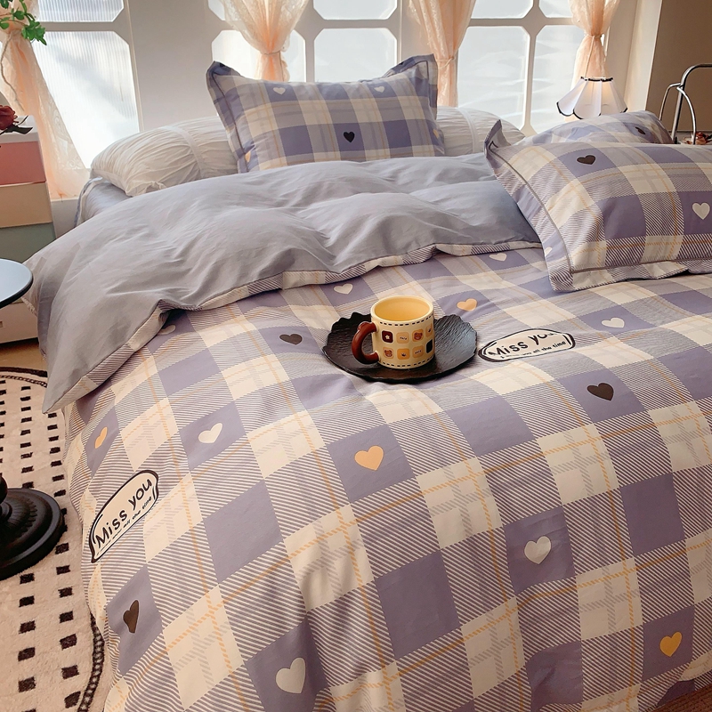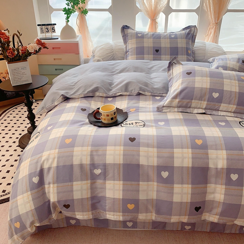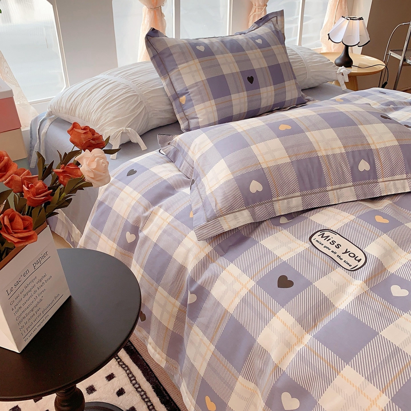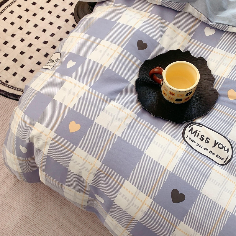 奈萝家纺2025新款全棉 小号三件套 标准四件套 爱心蓝格