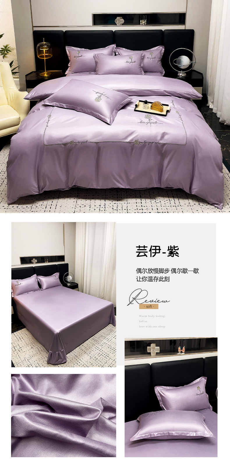 商品名称:2025春夏新款春夏新品水洗天丝棉轻奢刺绣四件套-芸伊 紫