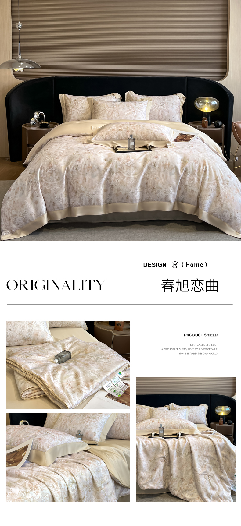当前位置: 91家纺网 > 商品网购 > 床品套件 > 四件套 > 其它四件套 > 2025春夏新款简奢款嵌绳莱赛尔数码印花四件套单夏被床笠床单款 春旭恋曲