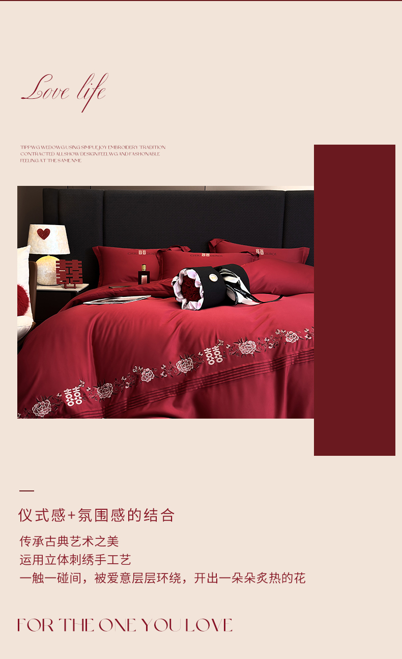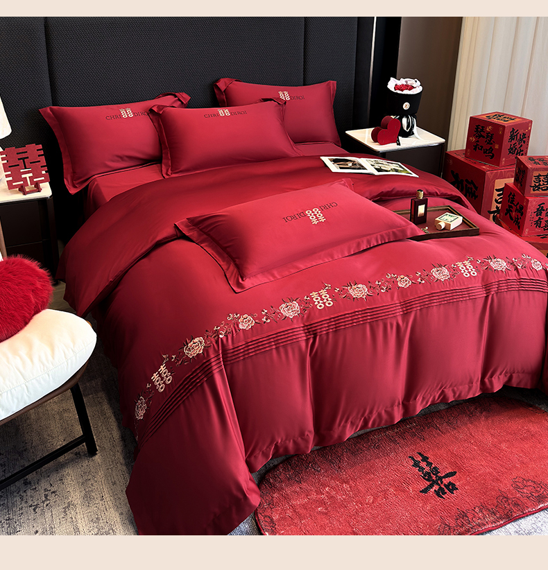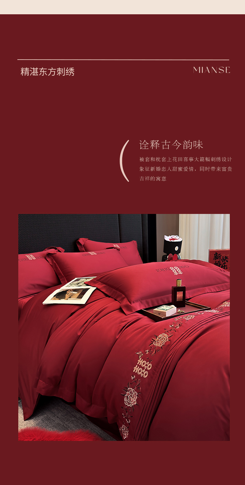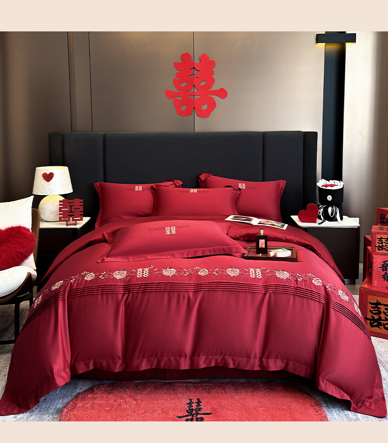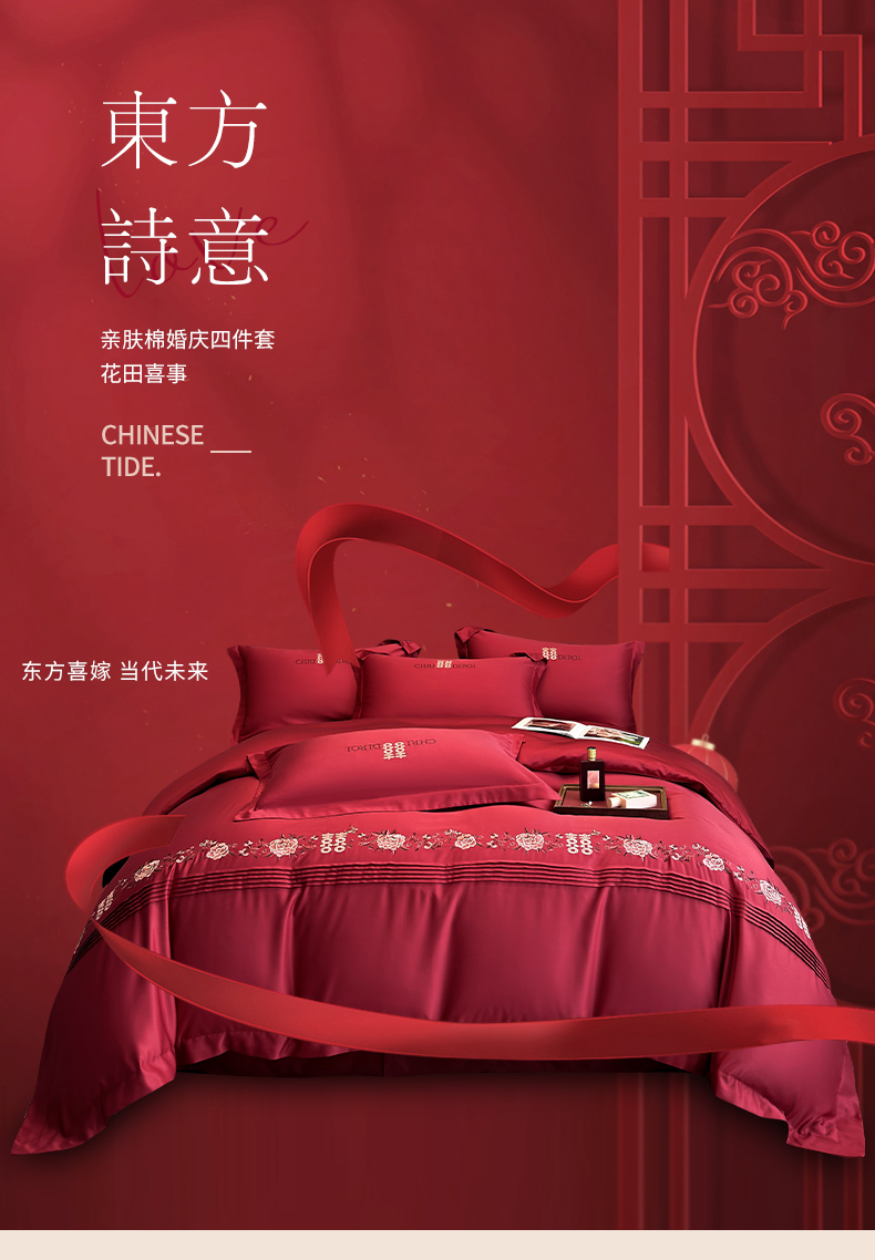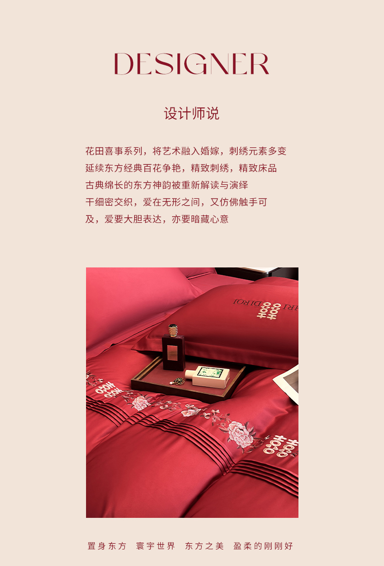 (总)奥汀洛家纺 2025新款亲肤棉高精密刺绣婚庆四件套-花田喜事