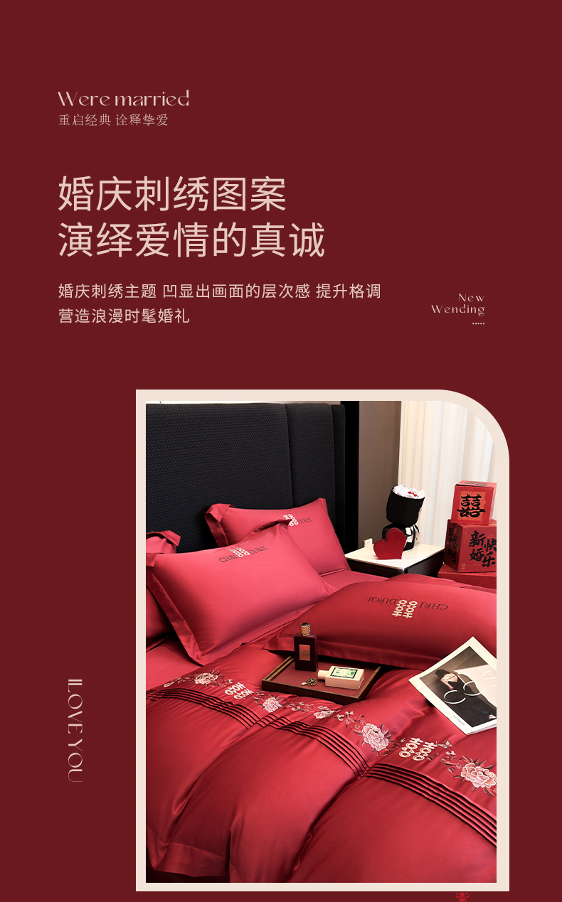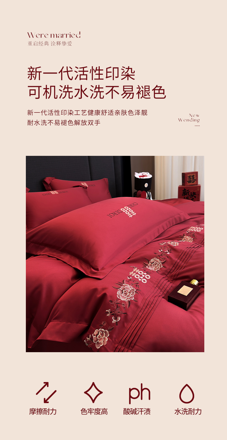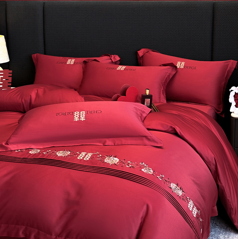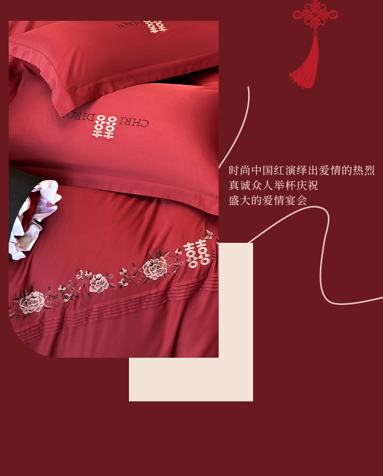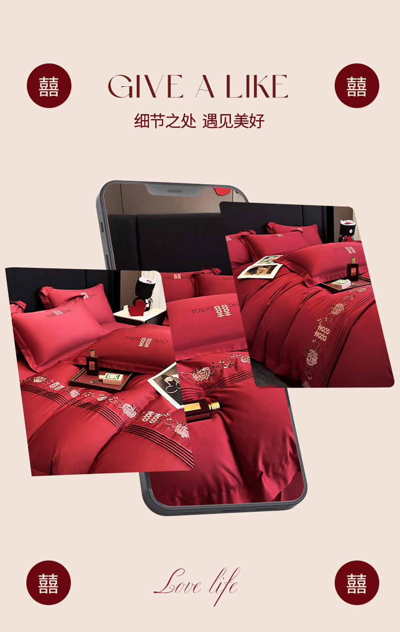 (总)奥汀洛家纺 2025新款亲肤棉高精密刺绣婚庆四件套-花田喜事