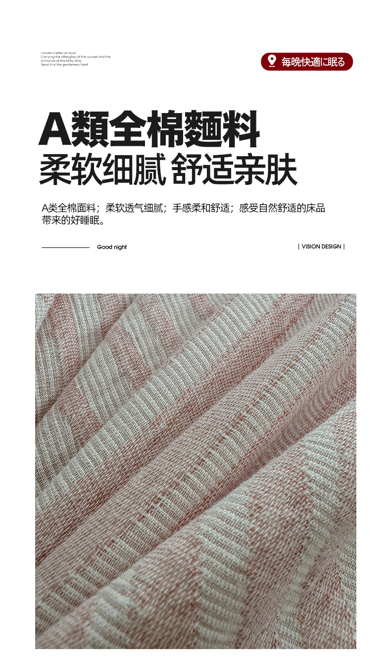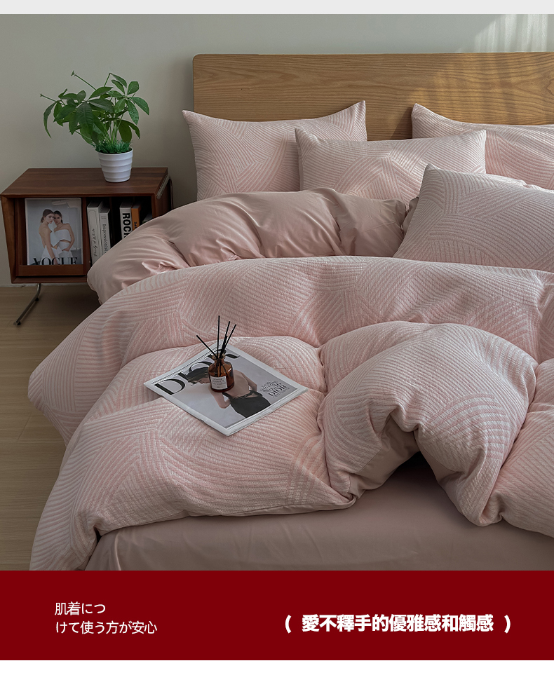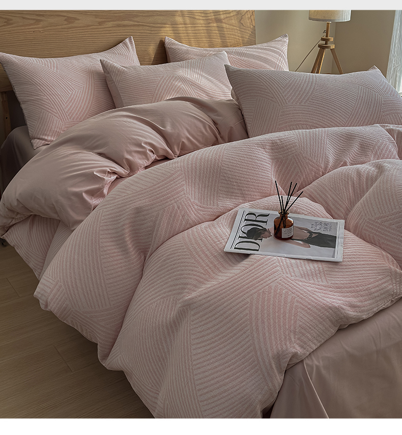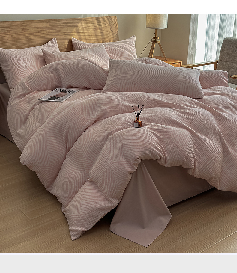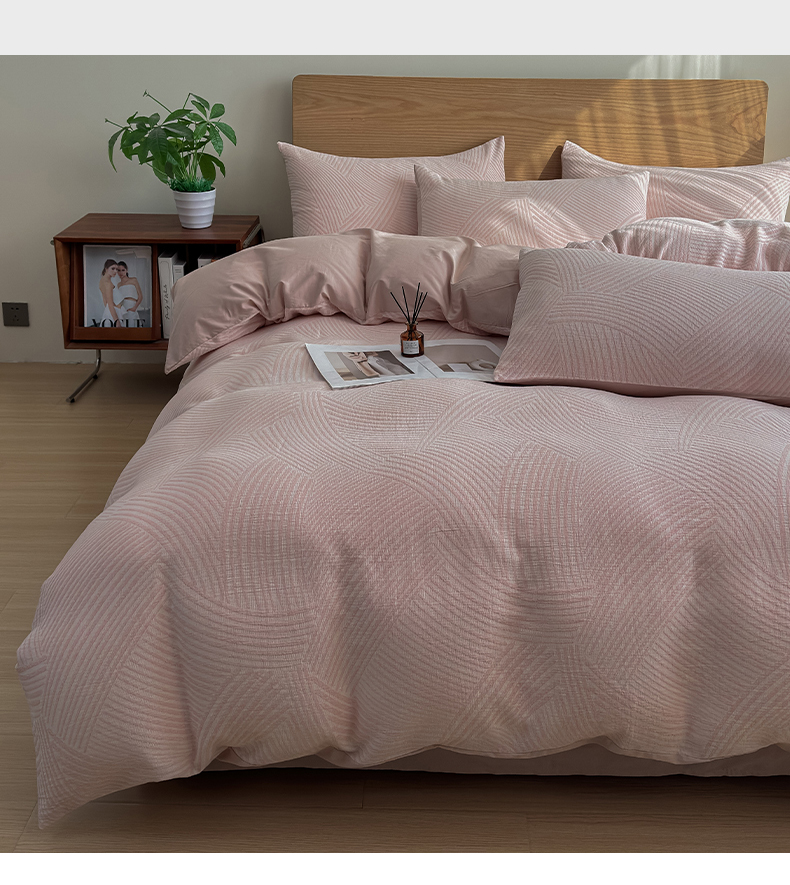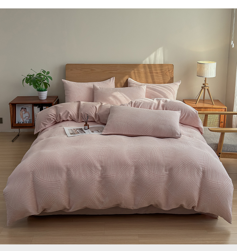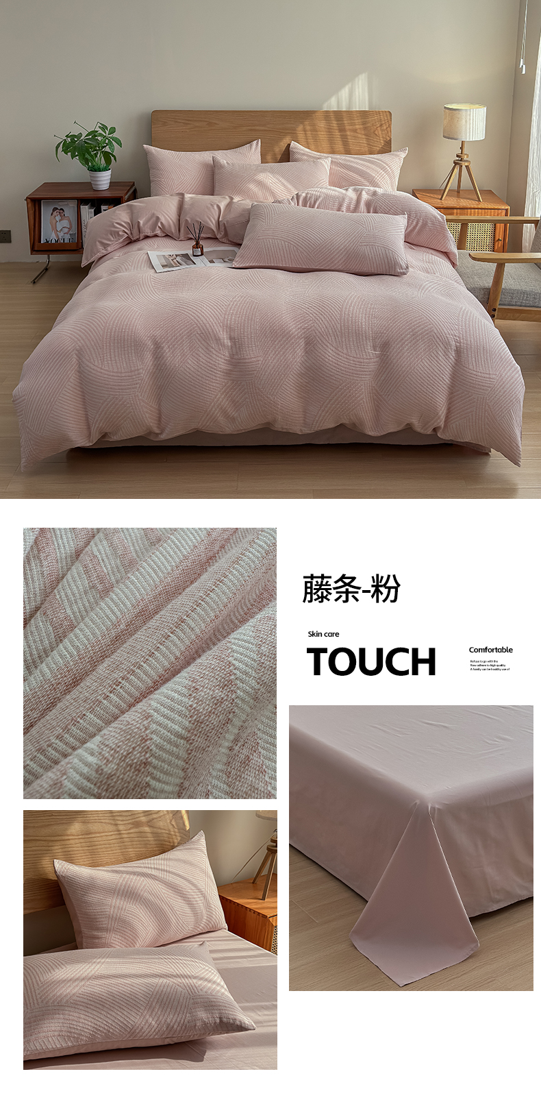 莱茵家居 2025春夏新款A类三层纱色织提花全棉四件套 藤条粉
