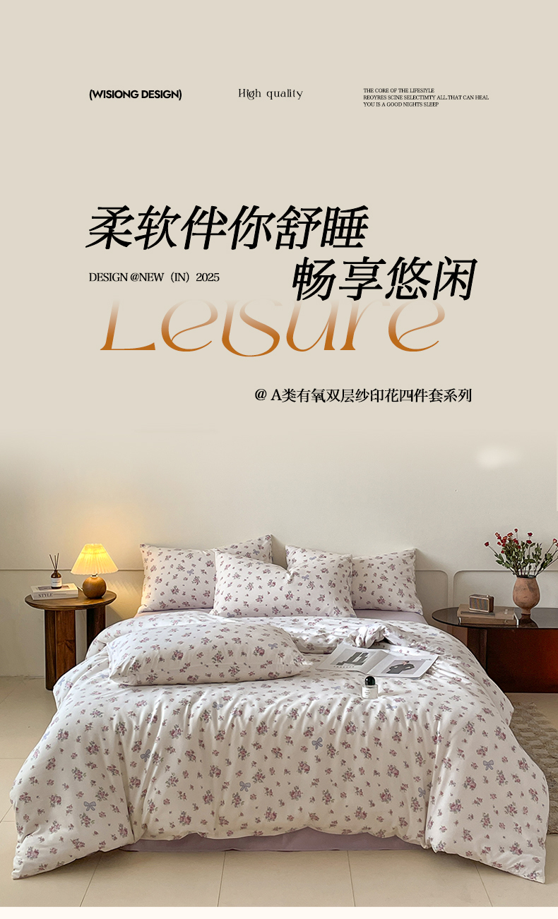诺梵家纺 2025新款有氧双层纱印花四件套 春不晚