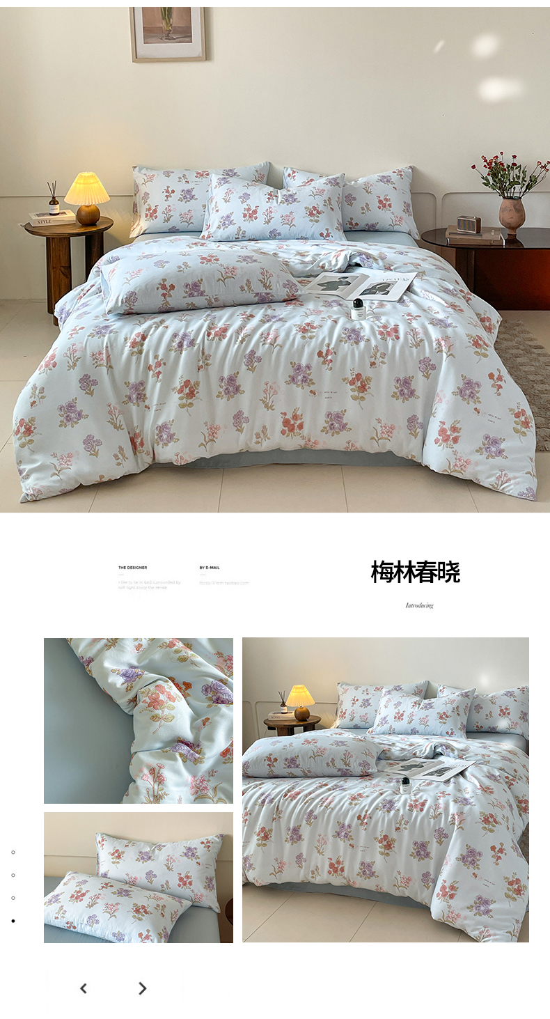 商品名称:诺梵家纺 2025新款有氧双层纱印花四件套 梅林春晓