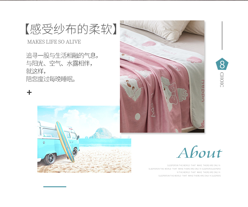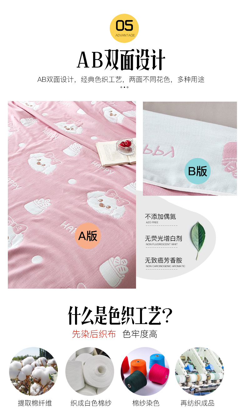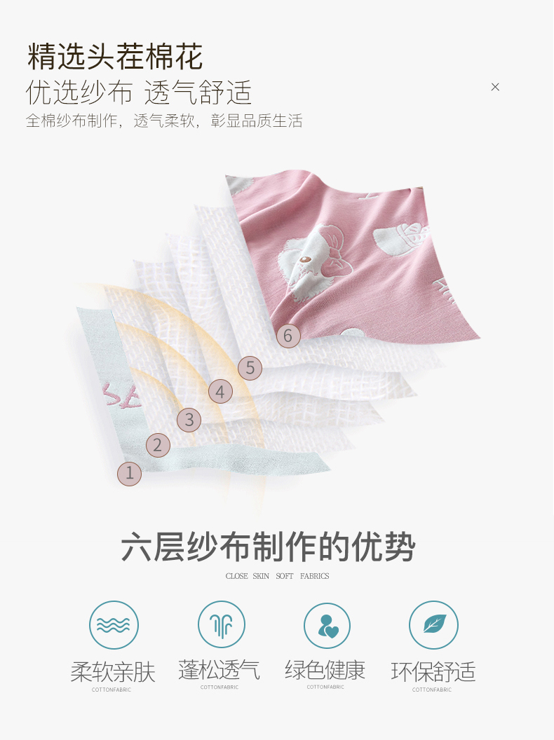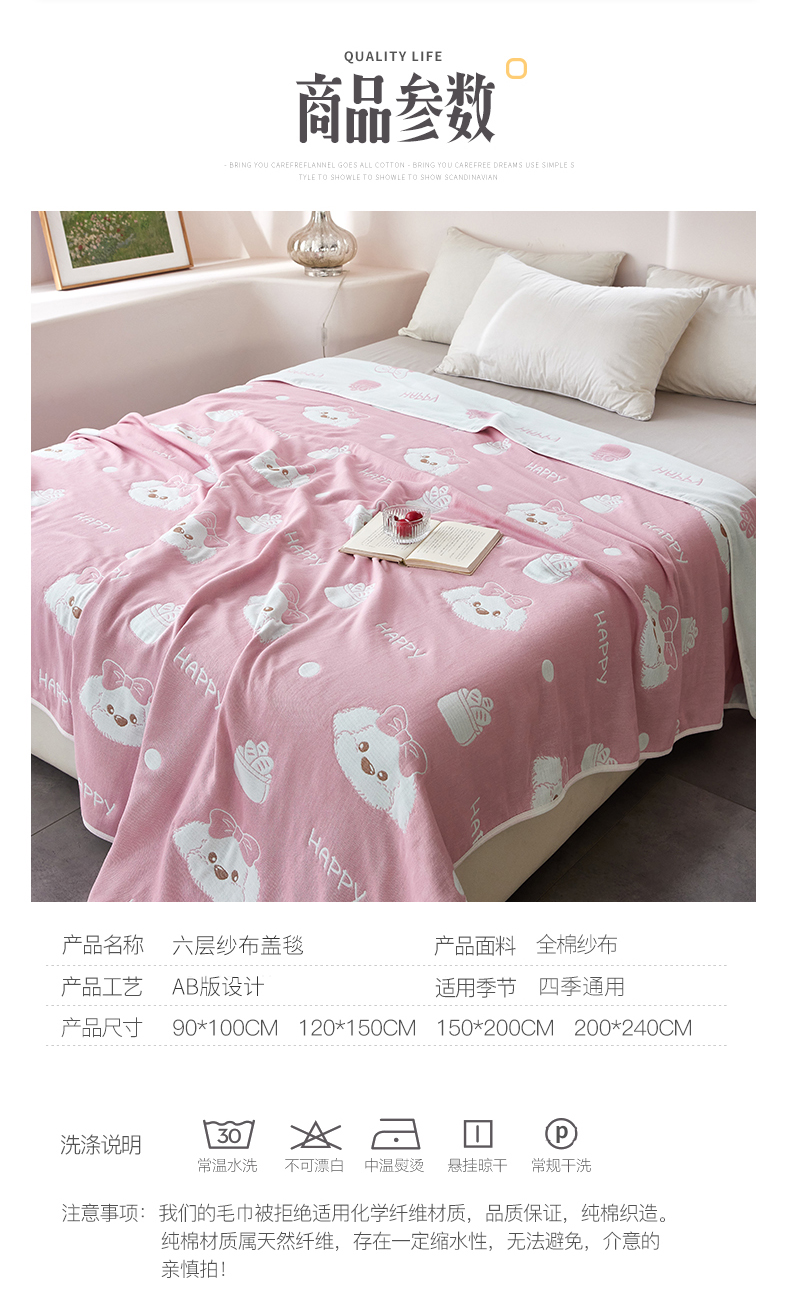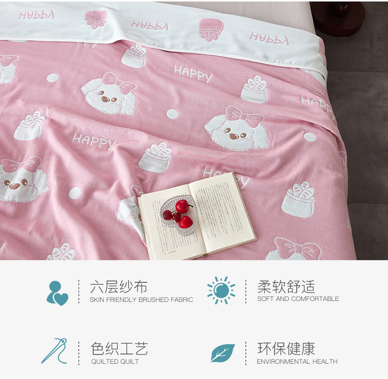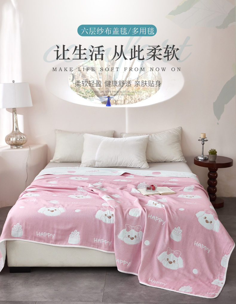 爱港家纺 2025新款全棉A类六层纱布毛巾被 夏被 甜心汪