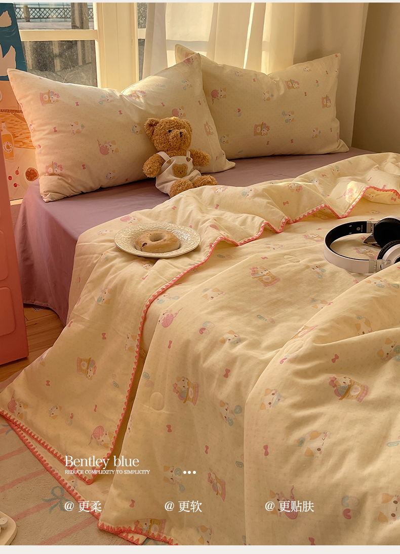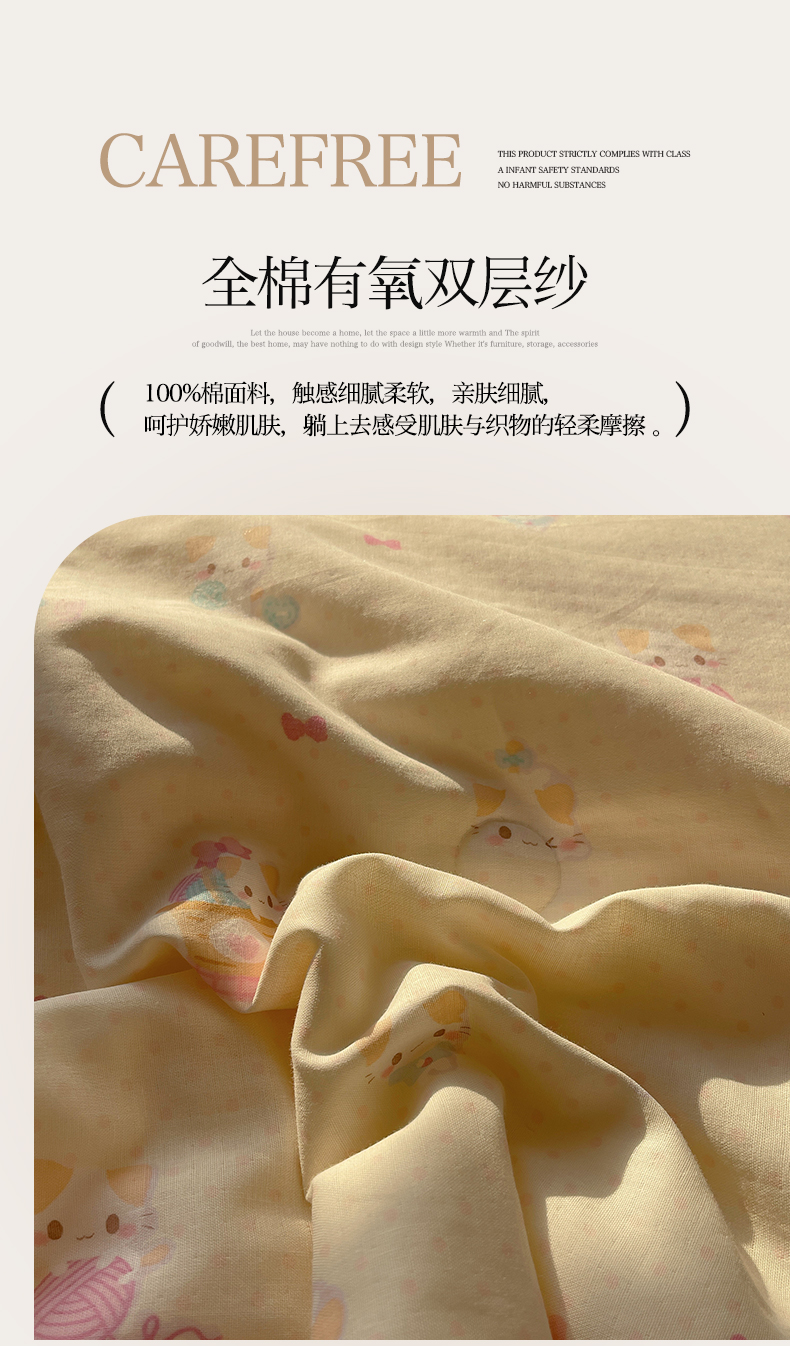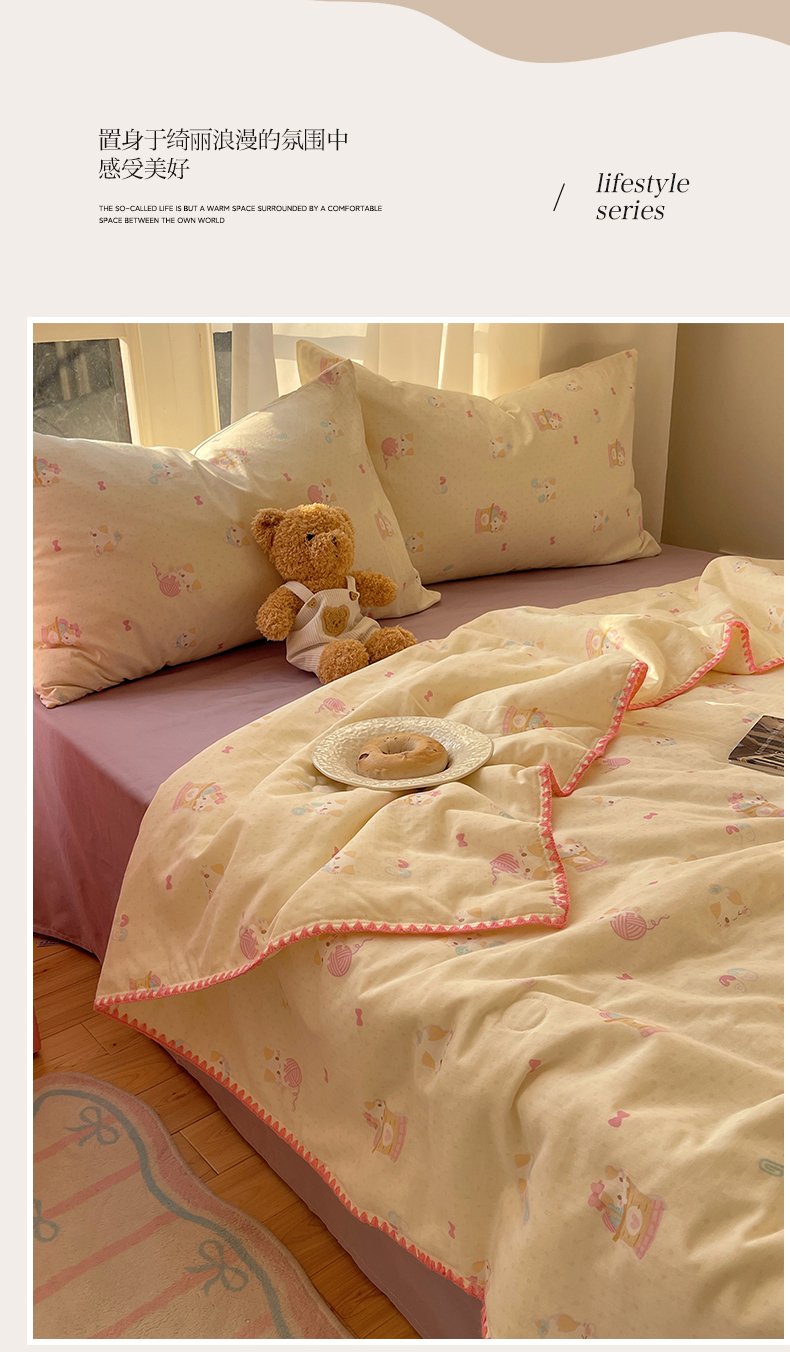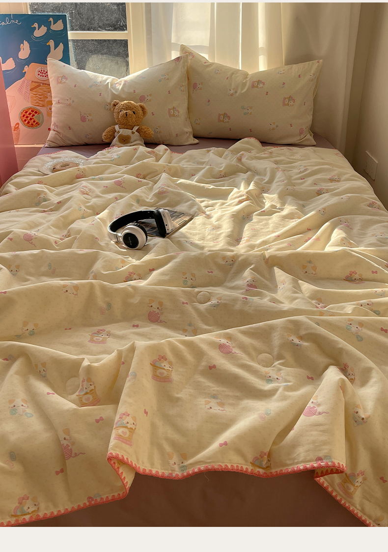 • 91家纺网 家纺一手货源 找家纺 一加一 2025A类全棉有氧双层纱印花夏被 糖果猫
