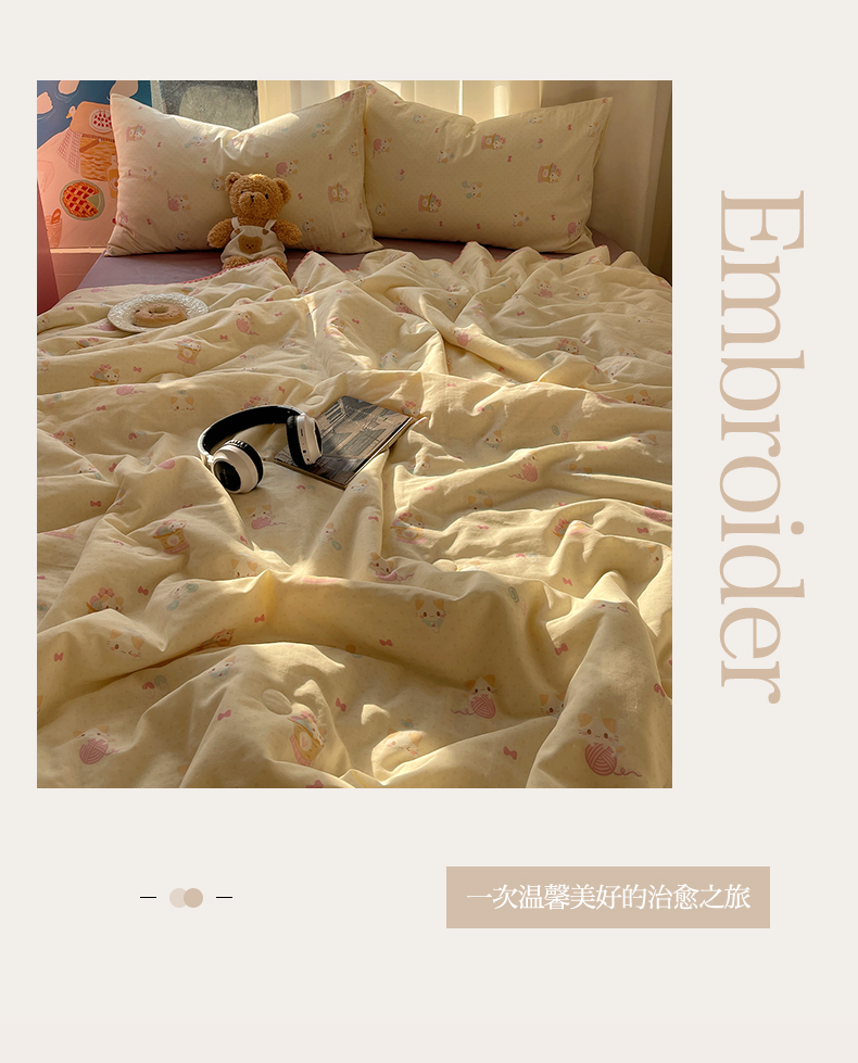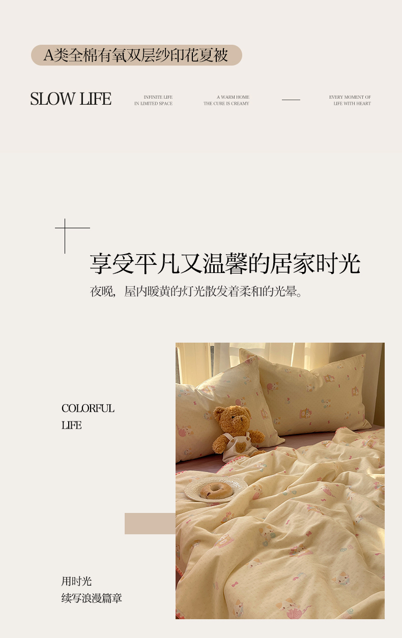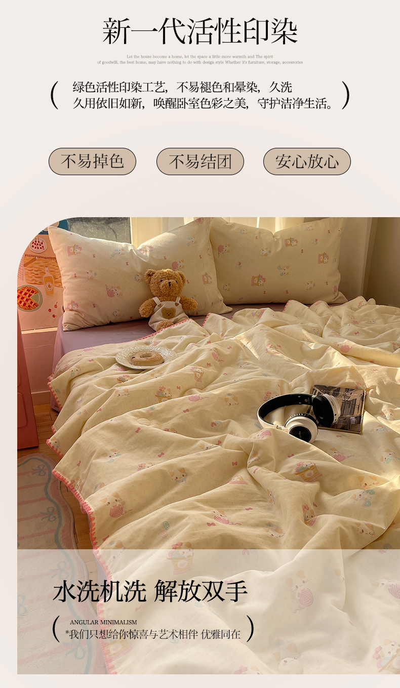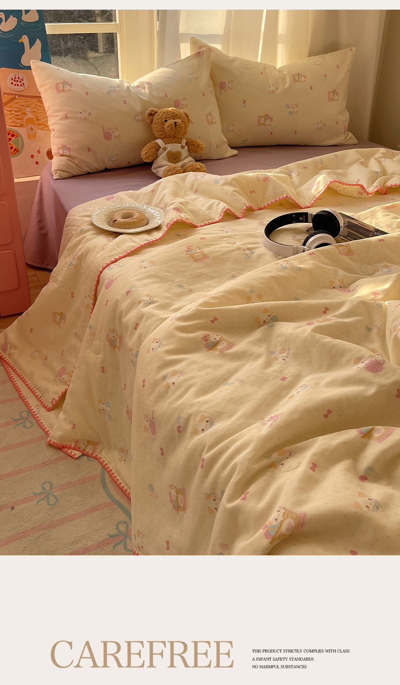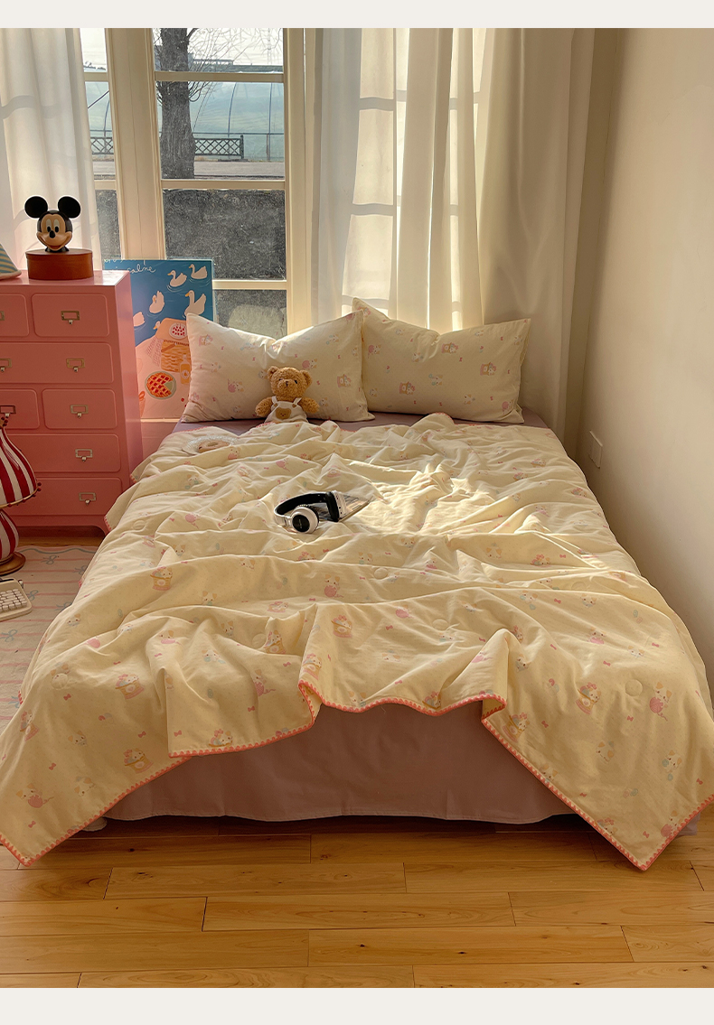 • 91家纺网 家纺一手货源 找家纺 一加一 2025A类全棉有氧双层纱印花夏被 糖果猫