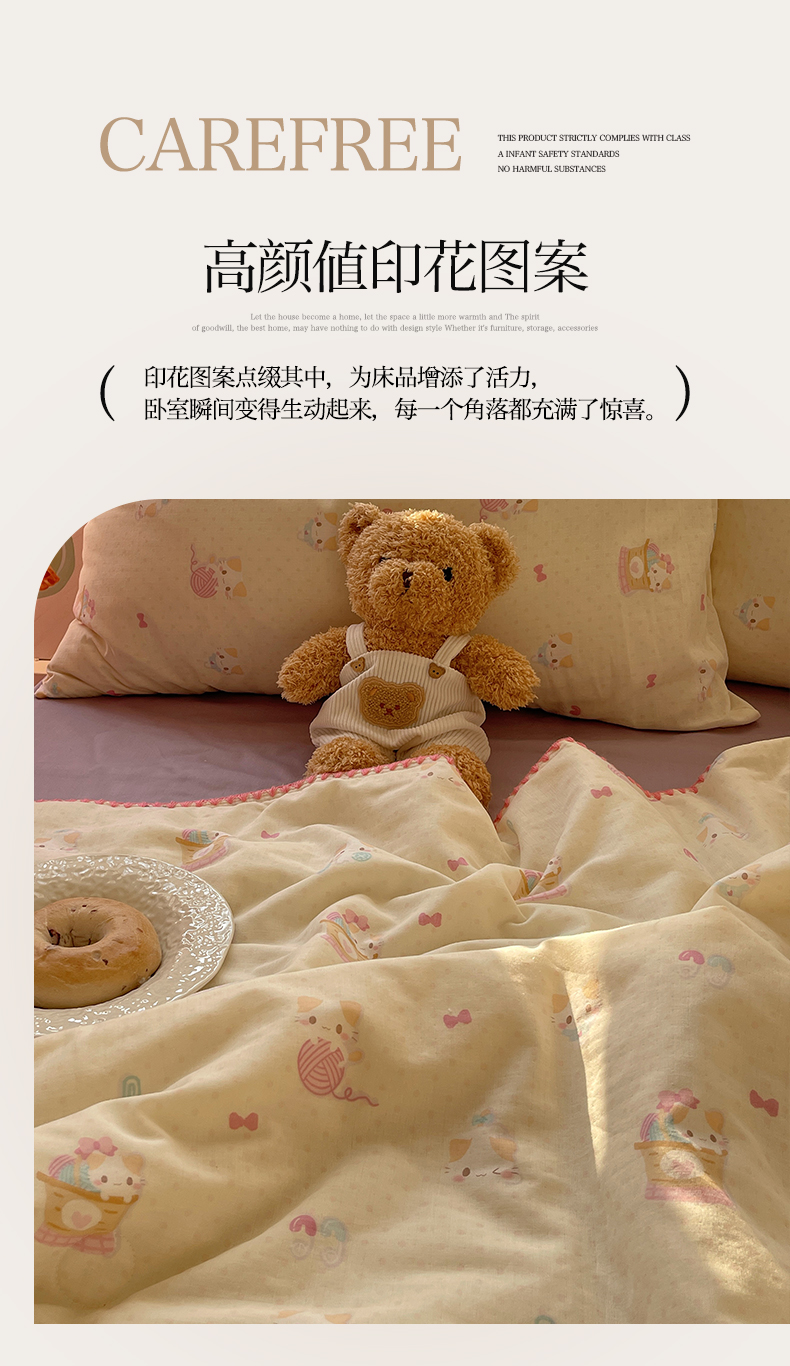 一加一 2025A类全棉有氧双层纱印花夏被 糖果猫