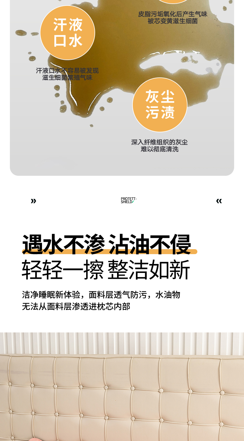 商品名称:云玲时尚 2025新款三防磨毛防水夹棉单人枕套 浅豆沙