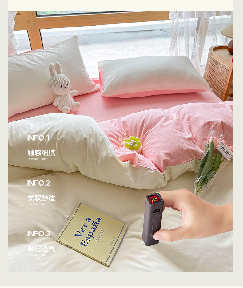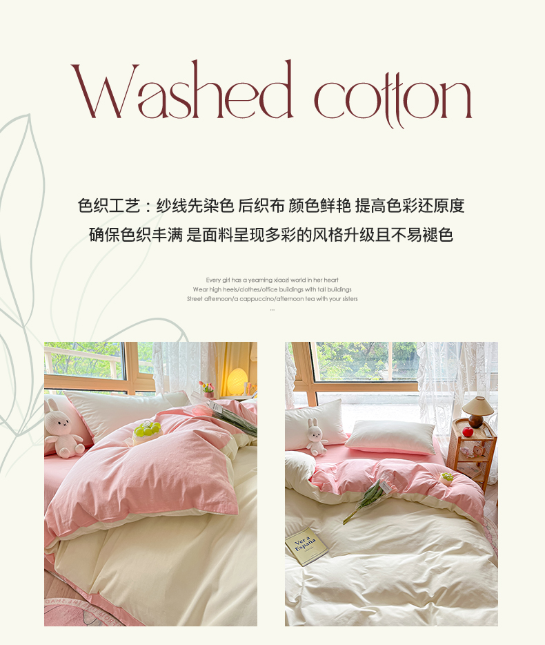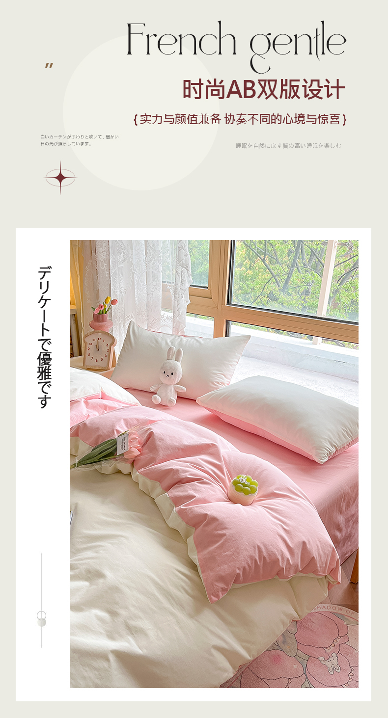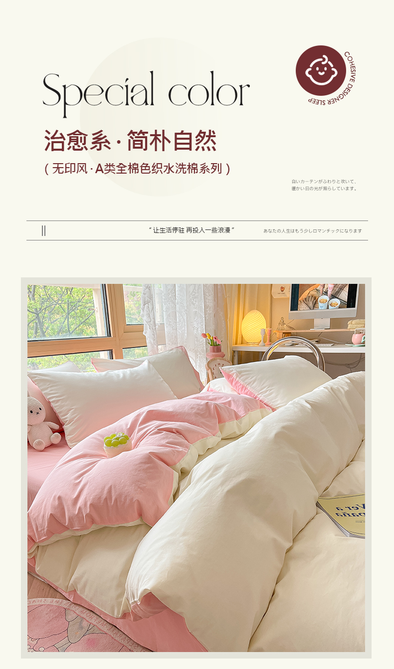 卡巴伦家纺 2025新款40支纯棉A类水洗棉四件套风格1 奶昔-粉