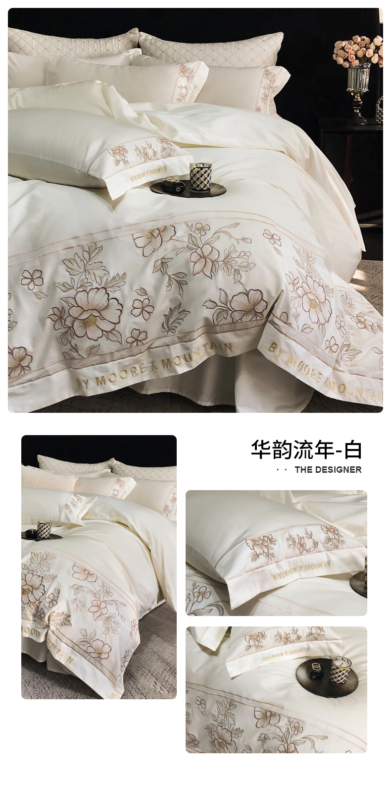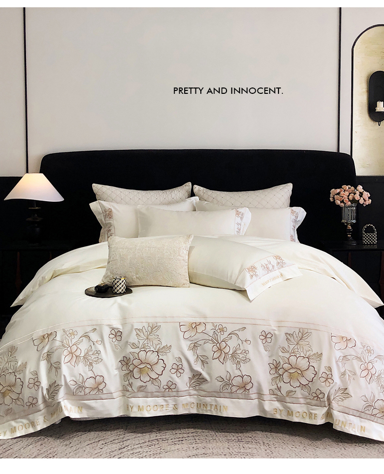 商品名称:(总)慕晨家纺 2025新款高密全棉40s重工刺绣简奢高端纯棉四件套直播礼盒装