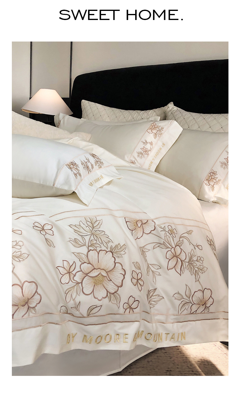 (总)慕晨家纺 2025新款高密全棉40s重工刺绣简奢高端纯棉四件套直播礼盒装