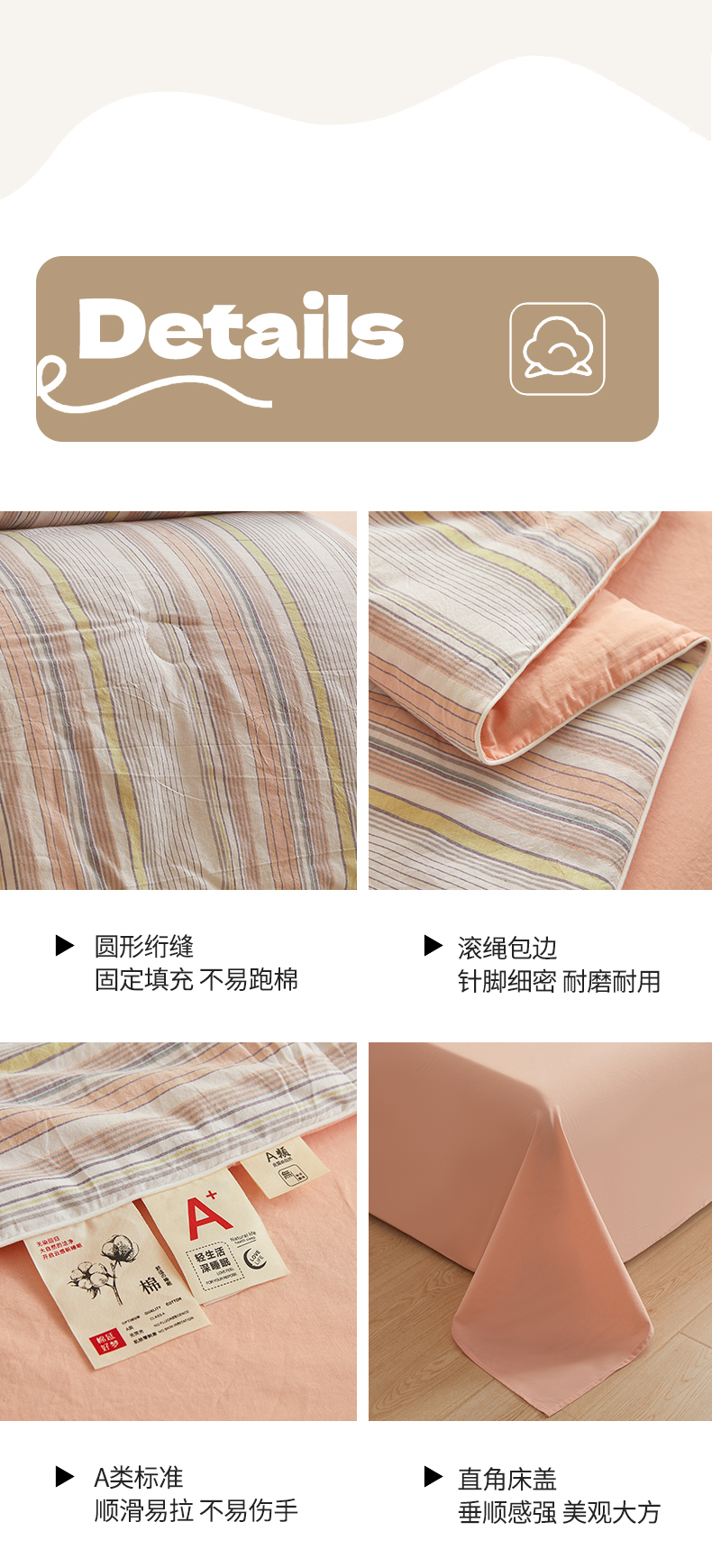 (总)金喜 2024新款100支全棉床盖蚕丝床盖三件套D型绗缝系列,白桃粉,繁花橙,粉雅灰,迷雾金,木槿绿