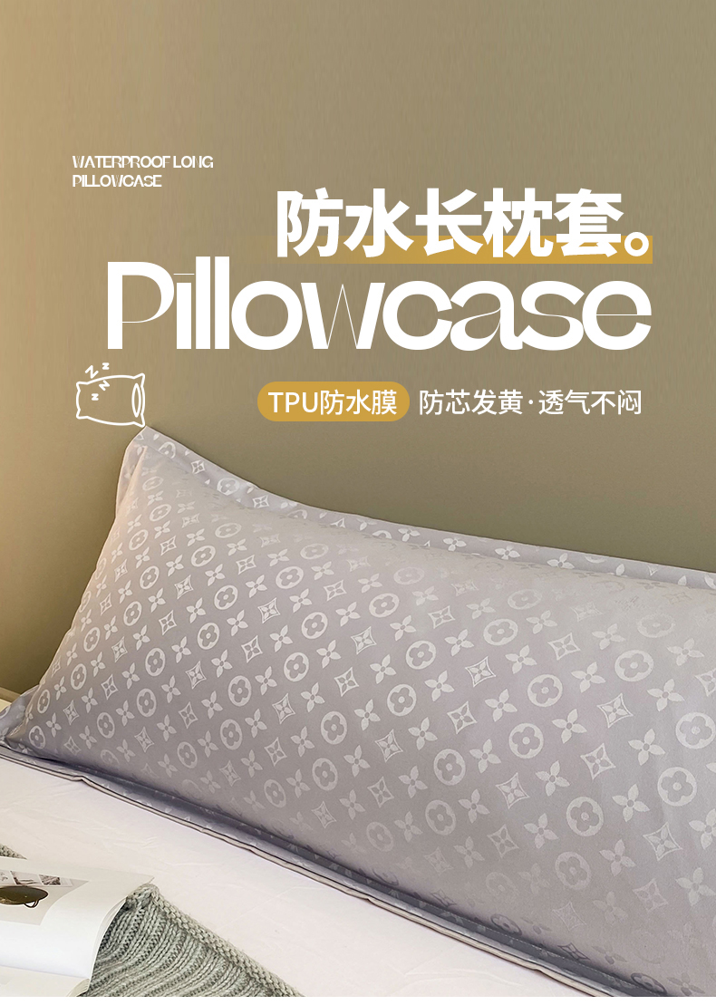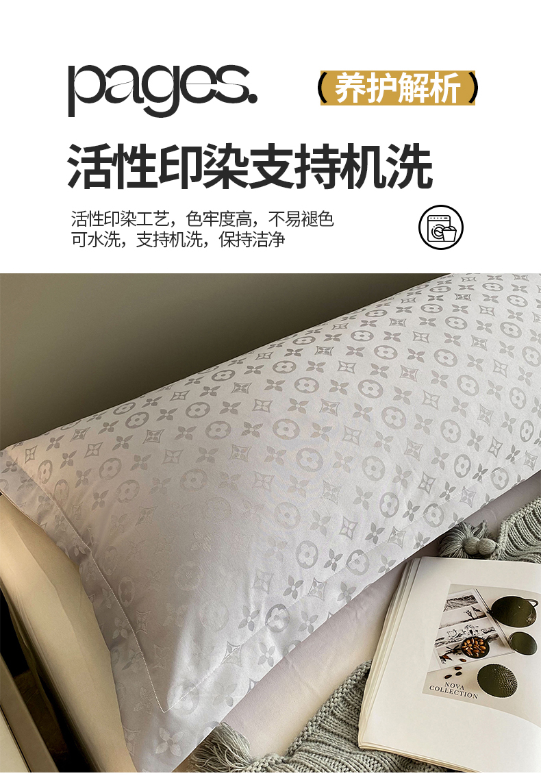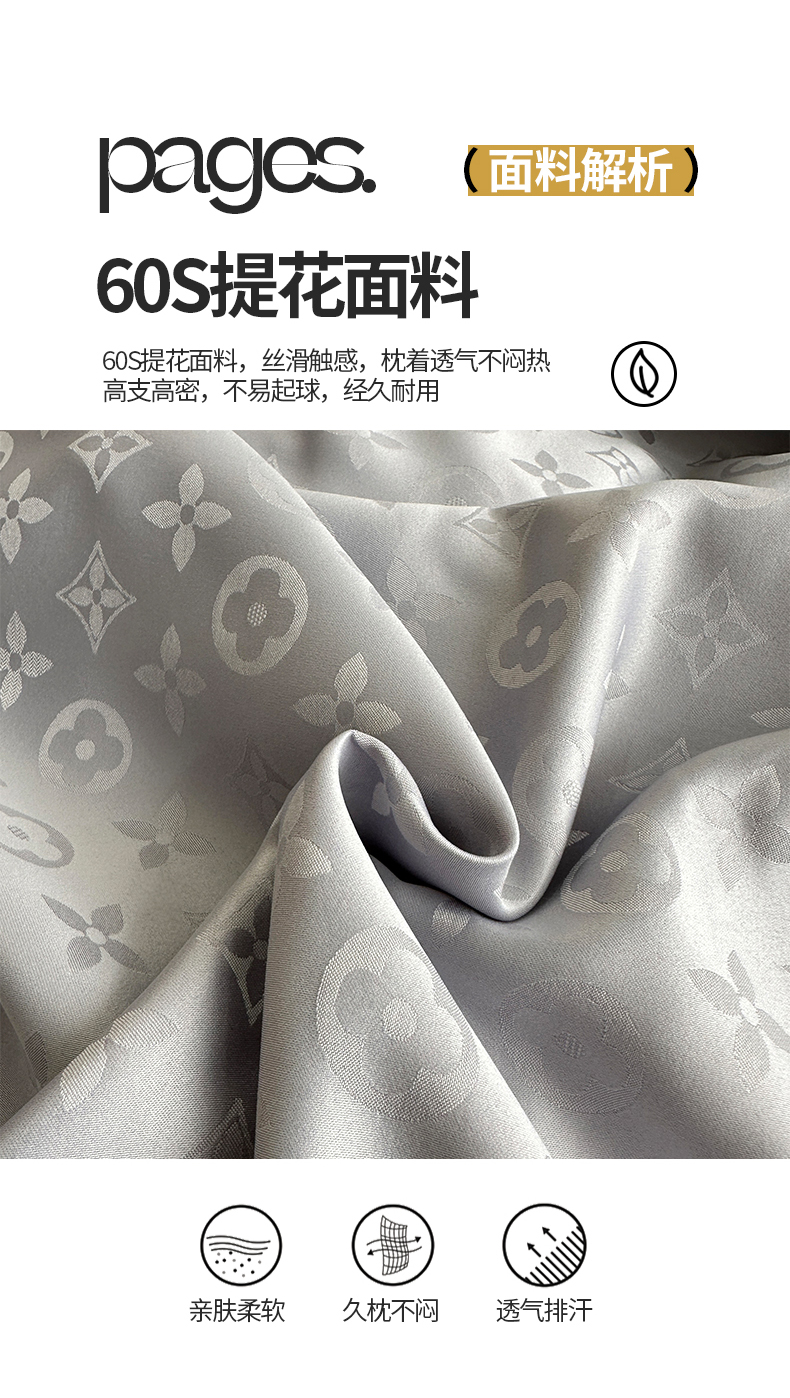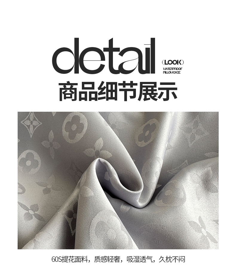 商品名称:云玲时尚 2025新款60S提花防水面料大牌贡缎轻奢长枕套 绅士灰