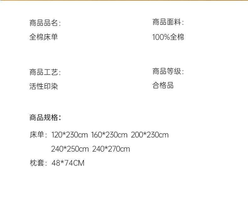 230x240cm床单+枕套2只 | ¥48.00 |