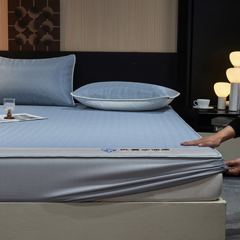 (总)小萌虎 2025新款冰豆豆凉席 床笠款,粉玉,果绿,灰色,咖色,浅蓝,深蓝