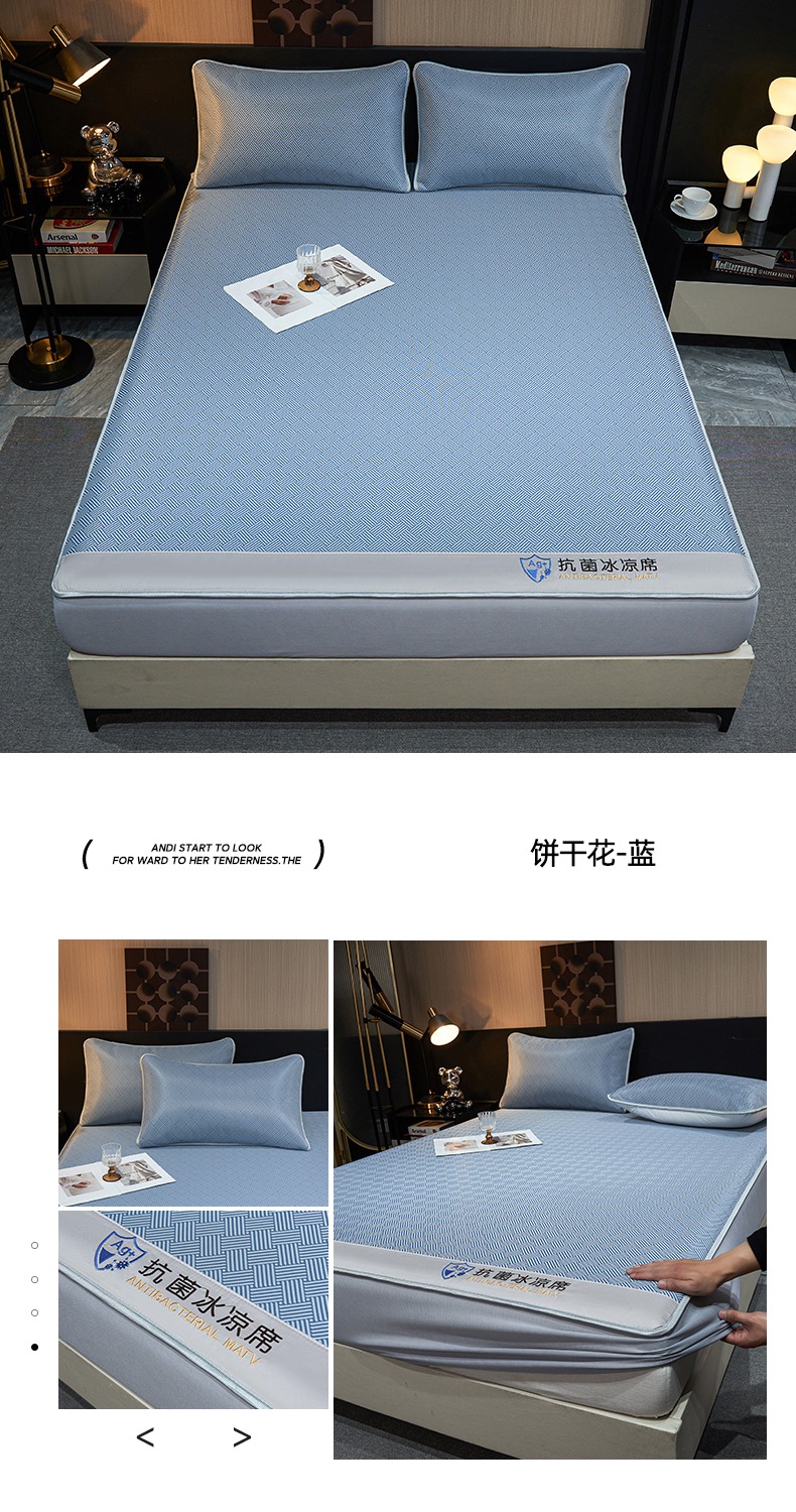 商品名称:小萌虎 2025新款碳光抗菌冰丝凉席床笠 饼干花-蓝