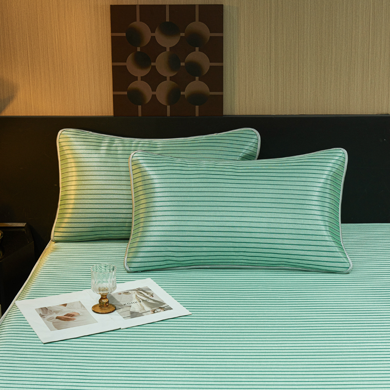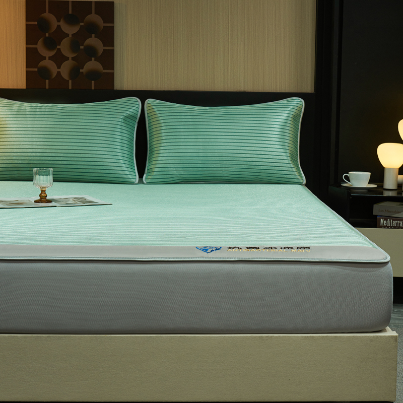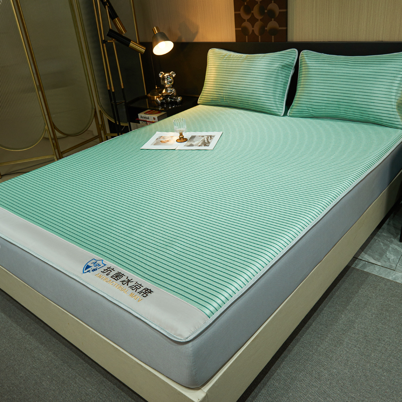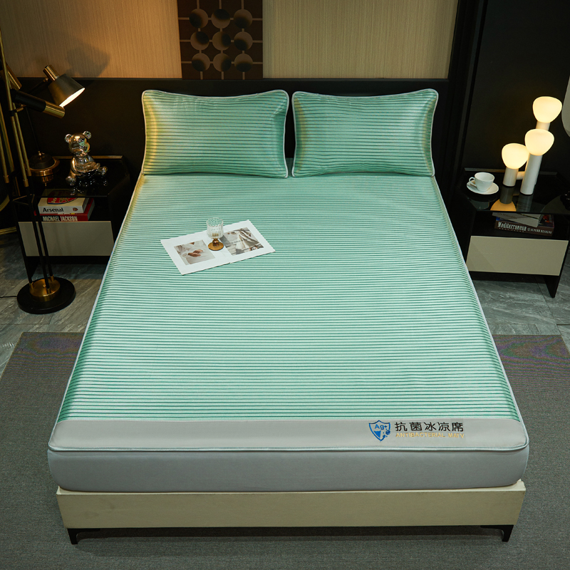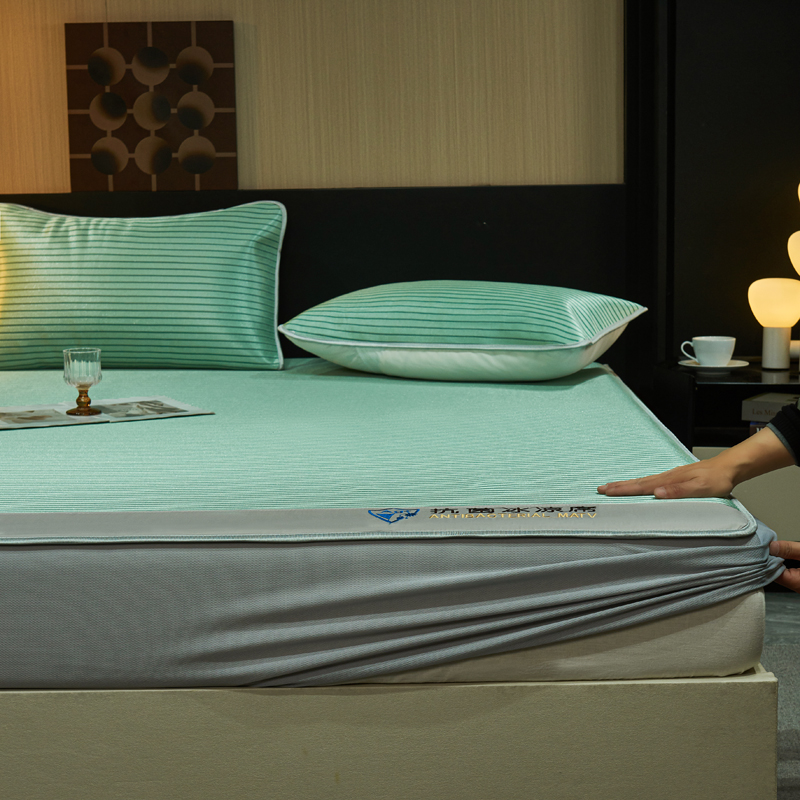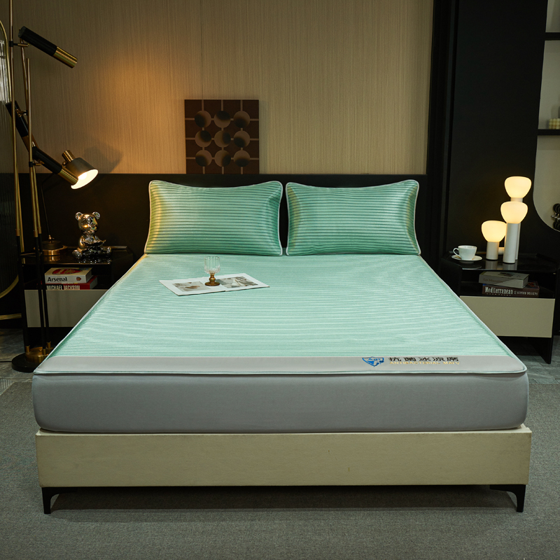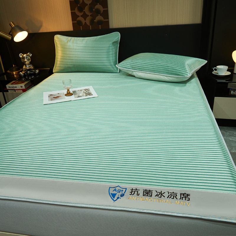 商品名称:小萌虎 2025新款碳光抗菌冰丝凉席床笠 水云间-绿