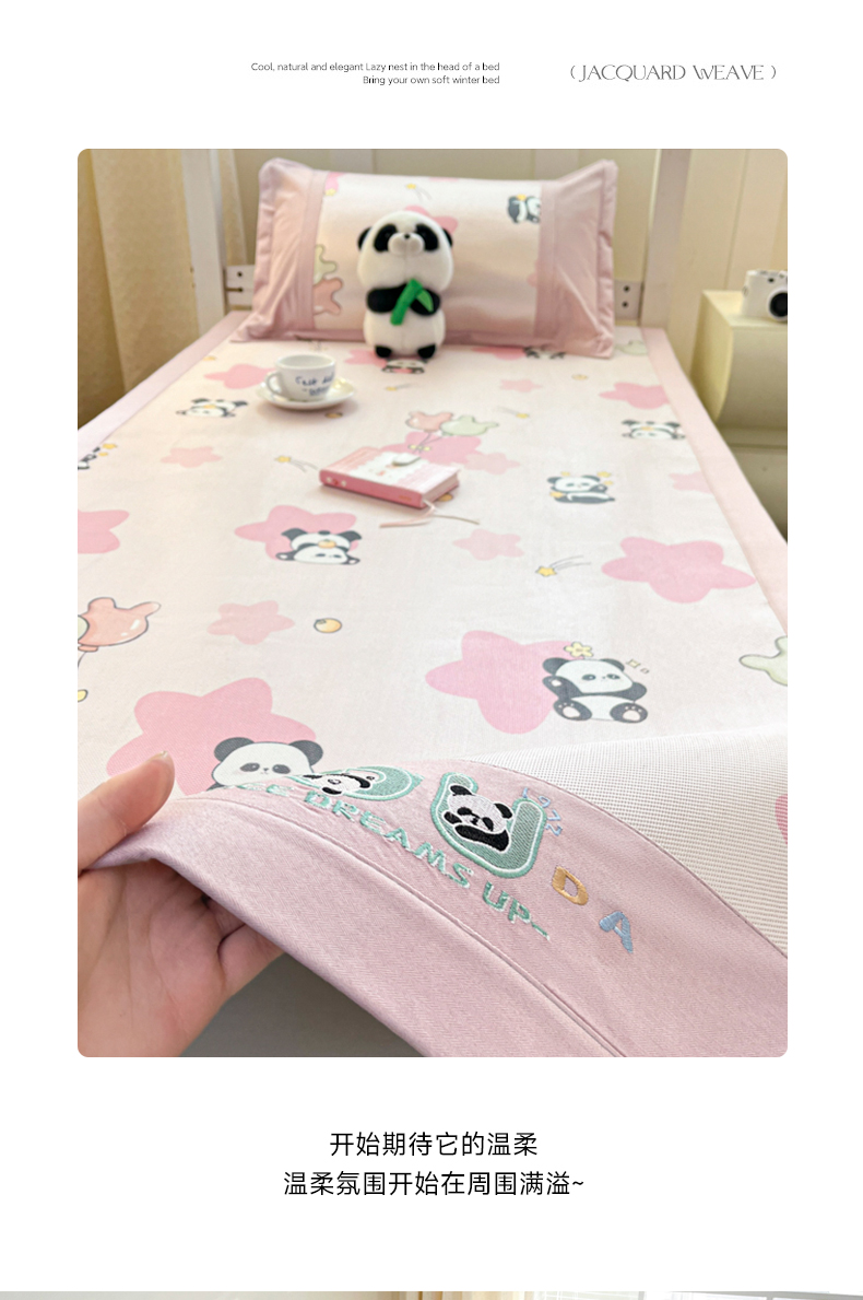 (总)2025新款印花冰藤凉席-学生款,杯具熊,冰块蓝,粉熊猫,可哒鸭,萝卜兔,太空人,小兰花,小企鹅