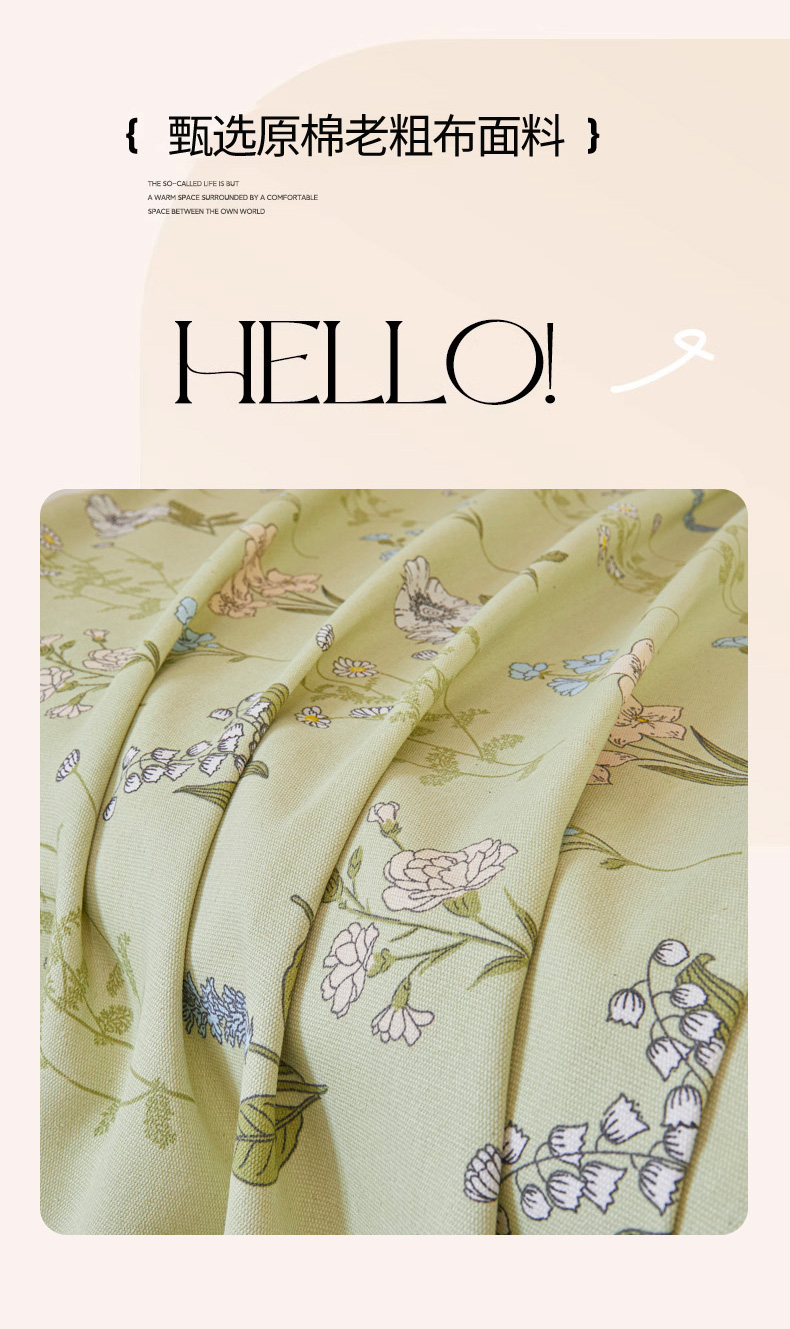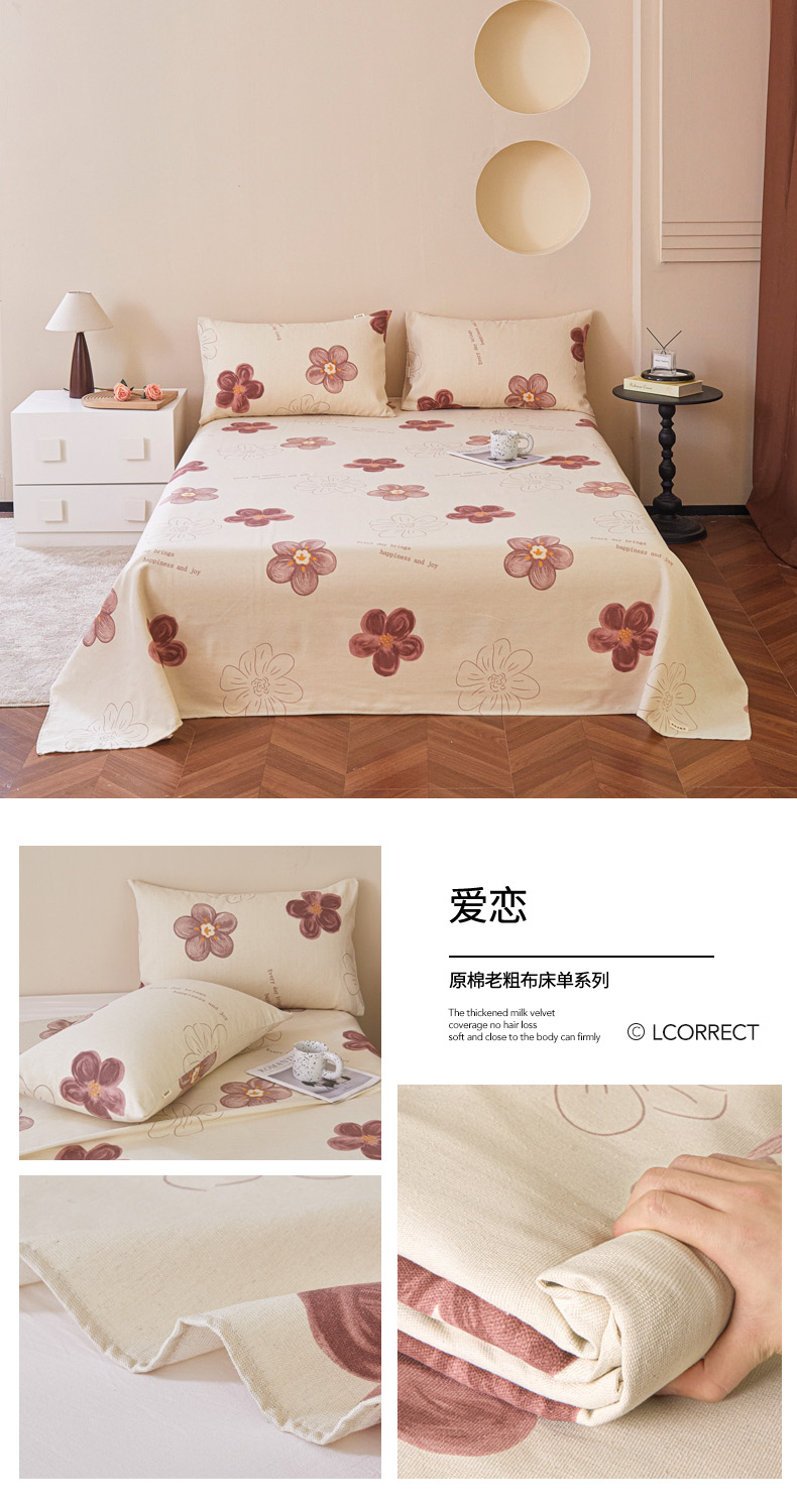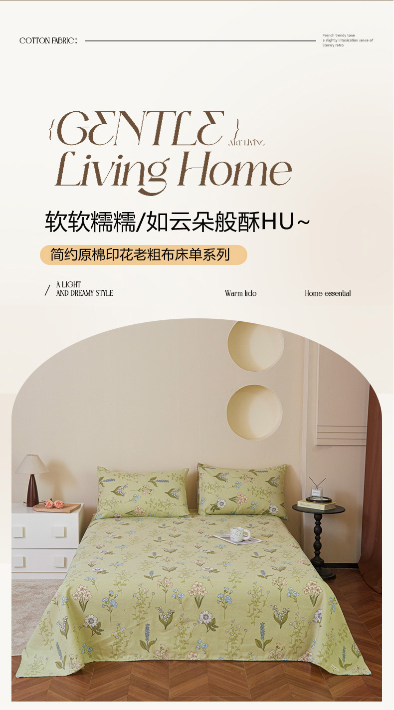 • 91家纺网 家纺一手货源 找家纺 绒艺席业 2025新款简约原棉印花老粗布床单 那年花开