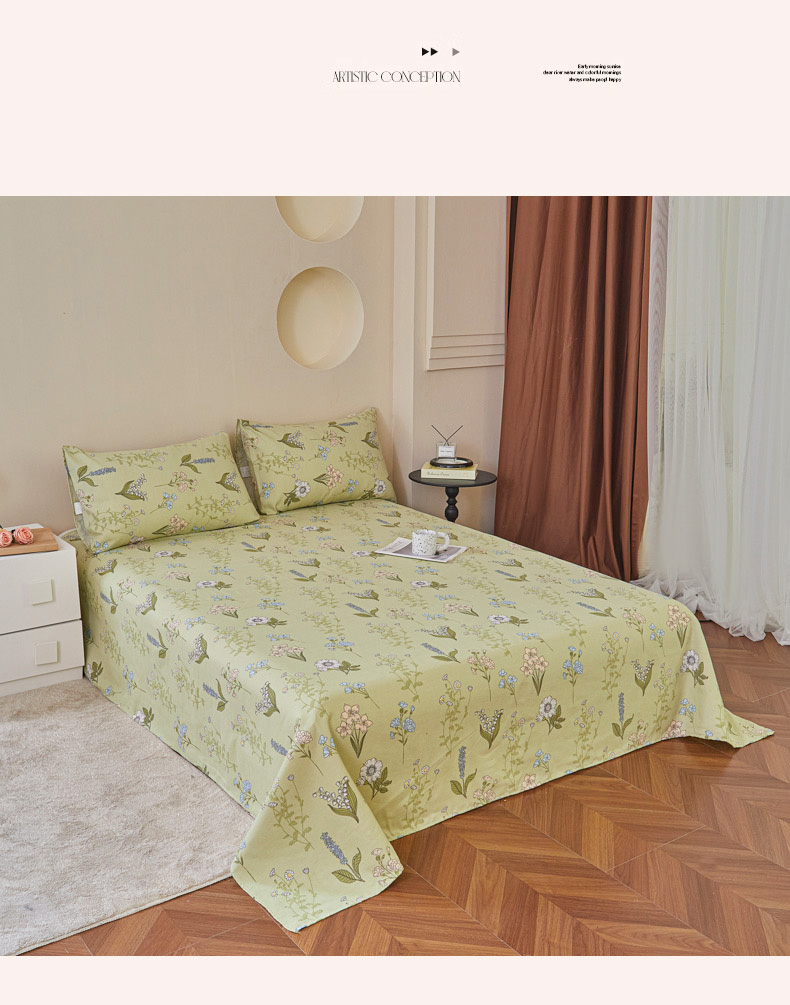 绒艺席业 2025新款简约原棉印花老粗布床单 那年花开