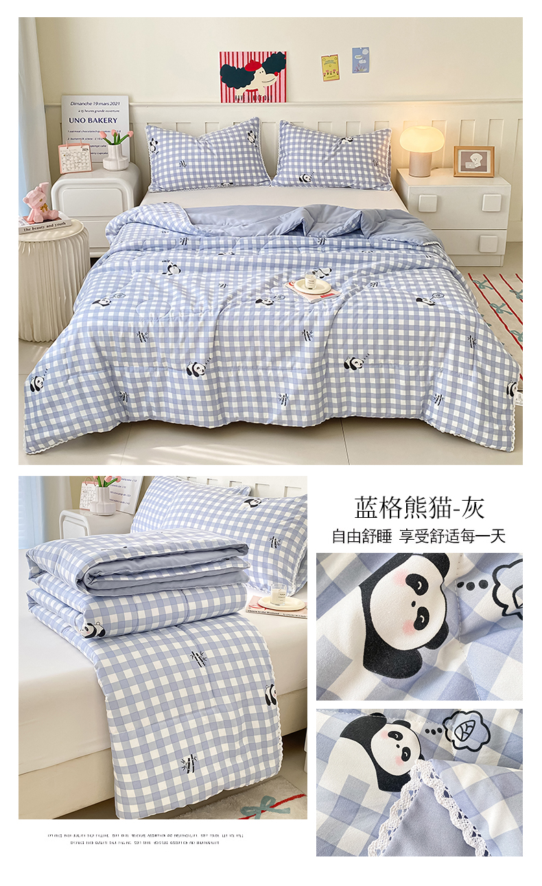商品名称:佰亿莱 2025春夏新款水洗棉羽丝绒小花边夏被夏凉被空调被 蓝格熊猫-灰