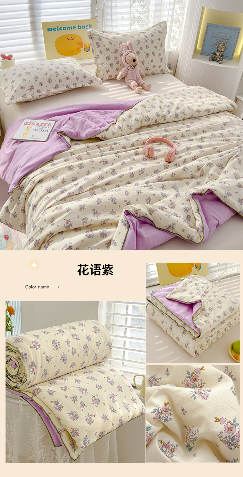 商品名称:星巴k家纺 2025新款A类水洗双层纱大豆纤维夏被夏凉被空调被 花语紫