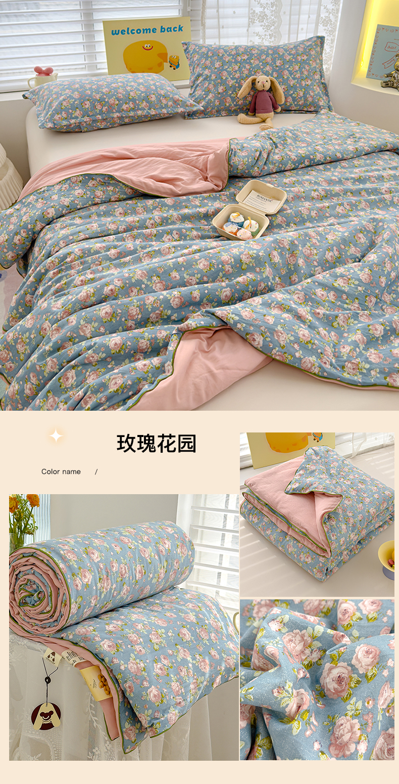 商品名称:星巴k家纺 2025新款A类水洗双层纱大豆纤维夏被夏凉被空调被 玫瑰花园