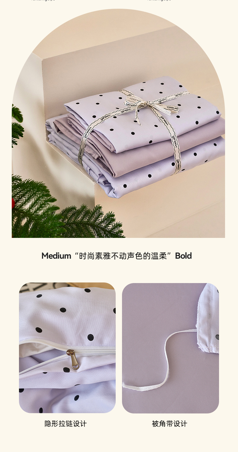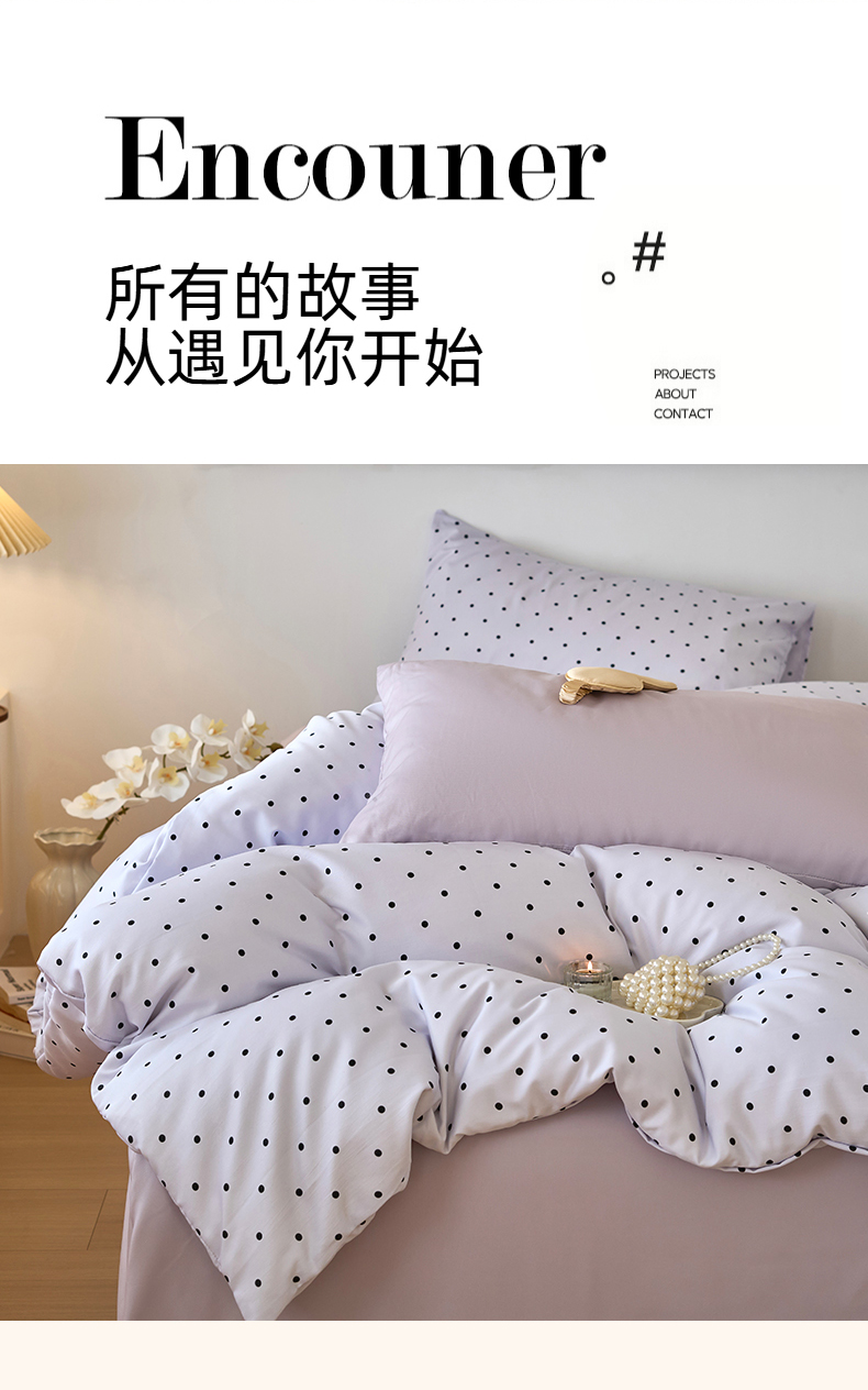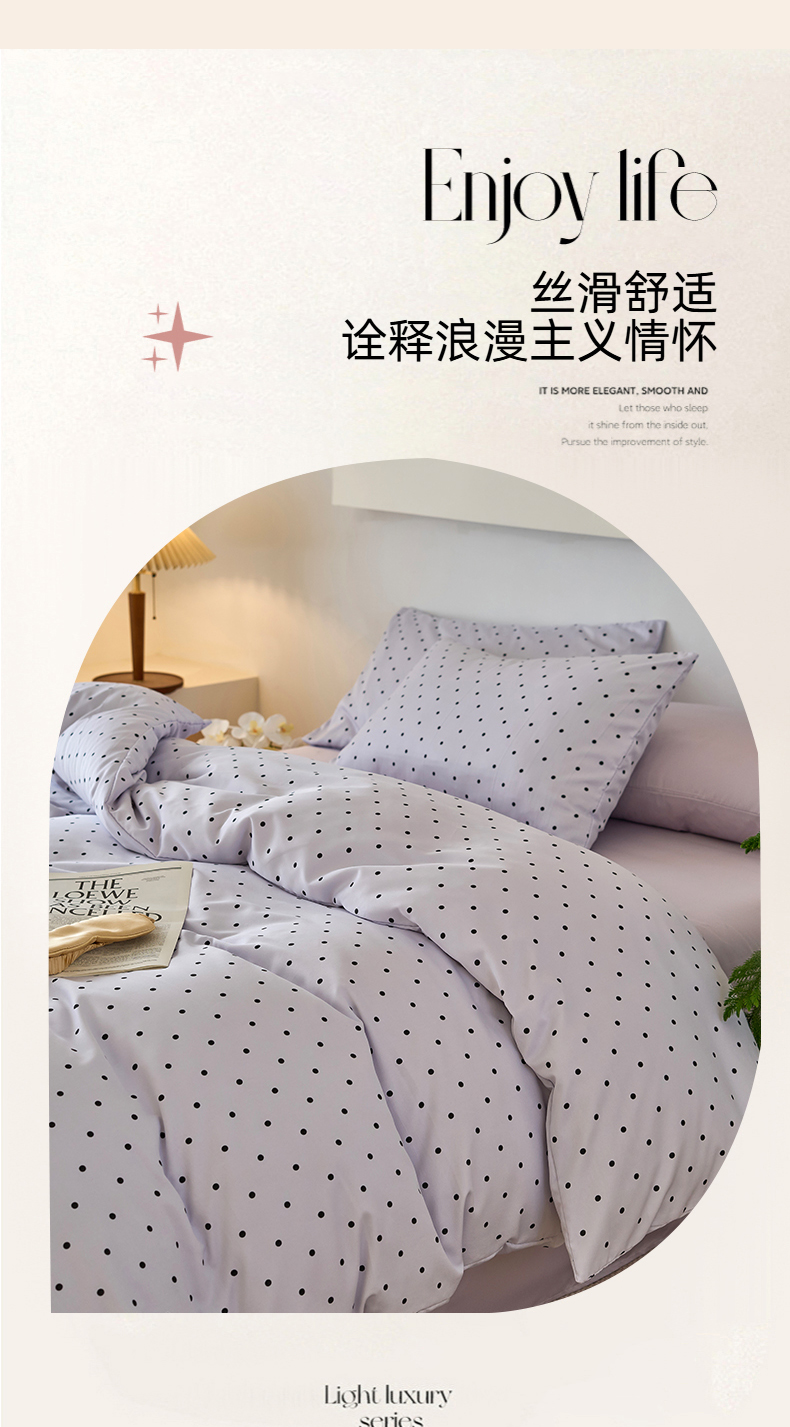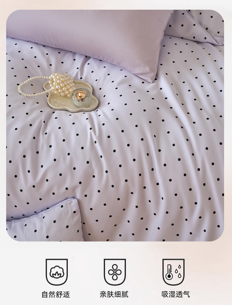 当前位置: 91家纺网 > 商品网购 > 床品套件 > 四件套 > 其它四件套 > 凯洛奇 2025新款简约小清新波点水洗冰丝天丝四件套-风格一 洛可-点点雾紫