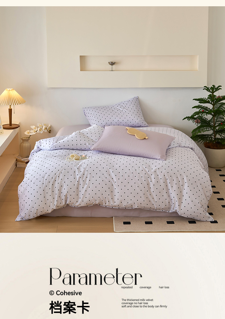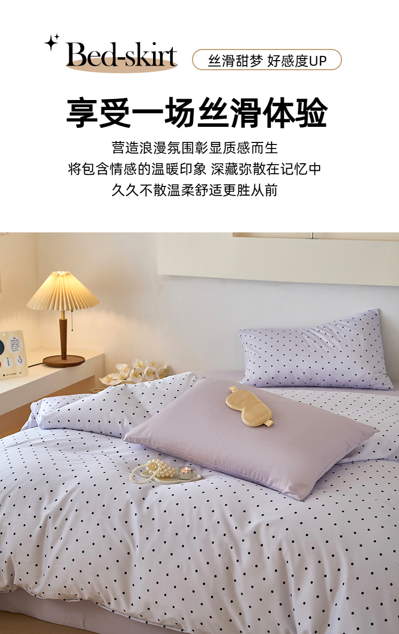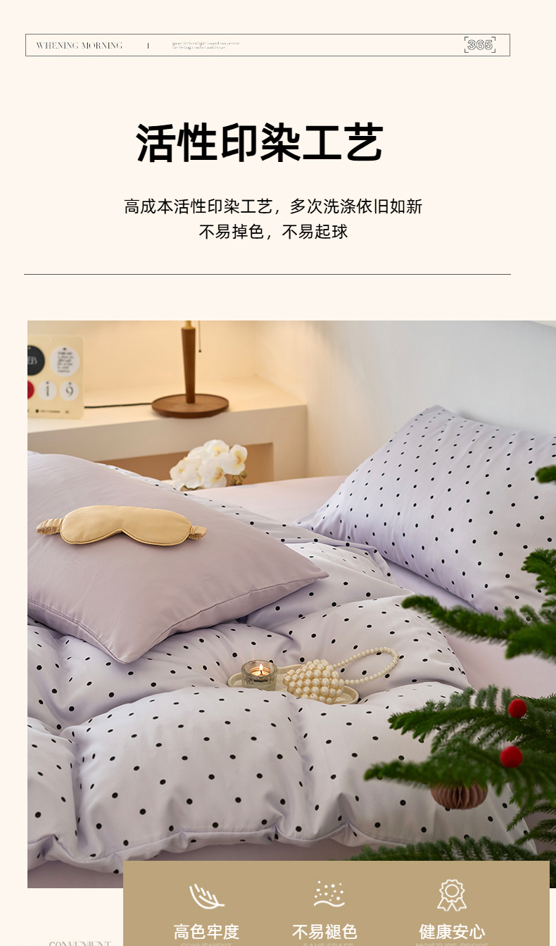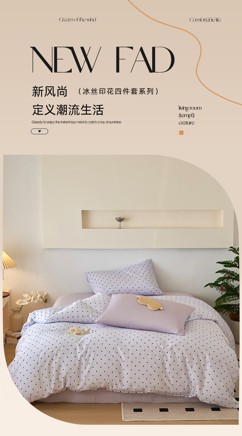 当前位置: 91家纺网 > 商品网购 > 床品套件 > 四件套 > 其它四件套 > 凯洛奇 2025新款简约小清新波点水洗冰丝天丝四件套-风格一 洛可-点点雾紫