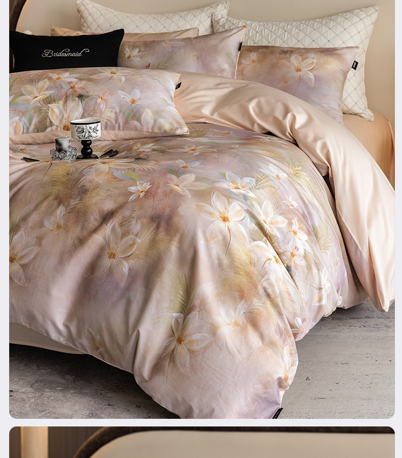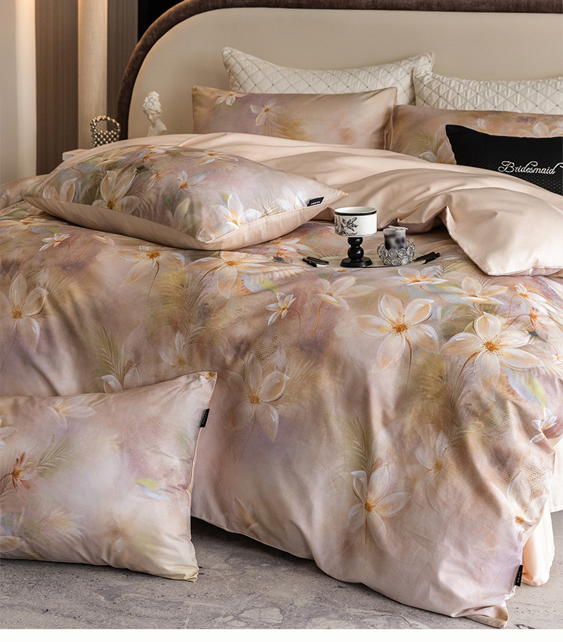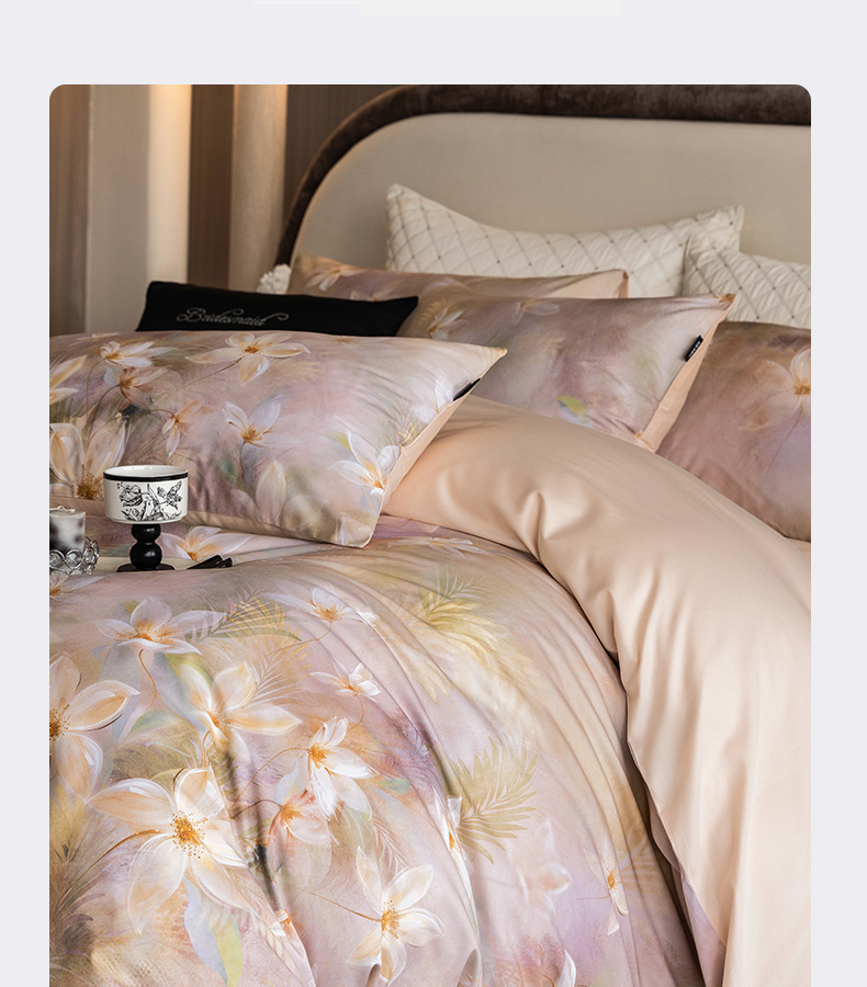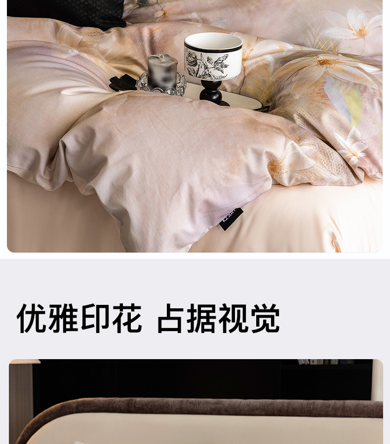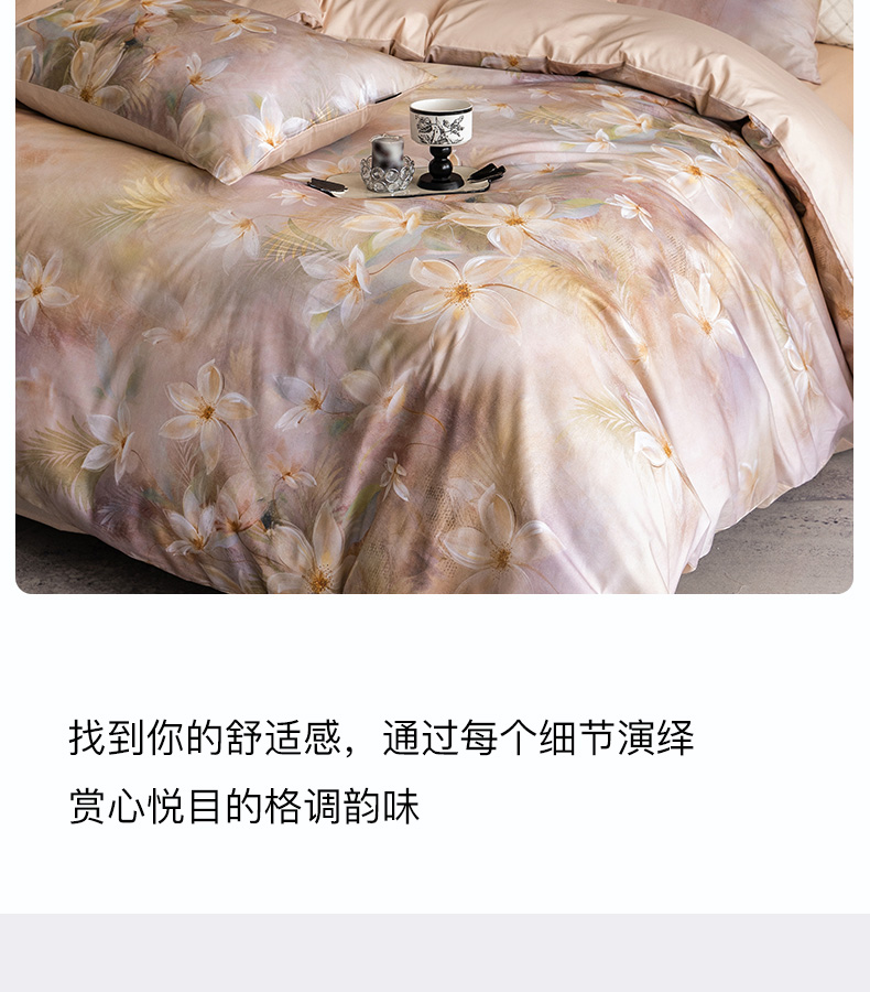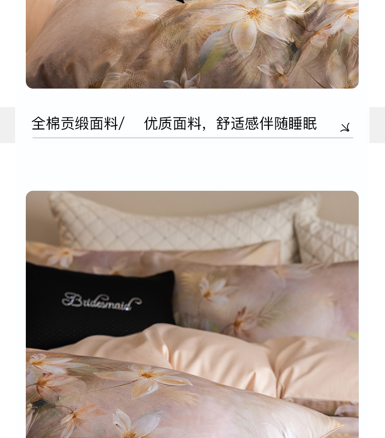 佳汐蓝家纺 2025新款春夏100贡缎长绒棉数码印花四件套 夏薇