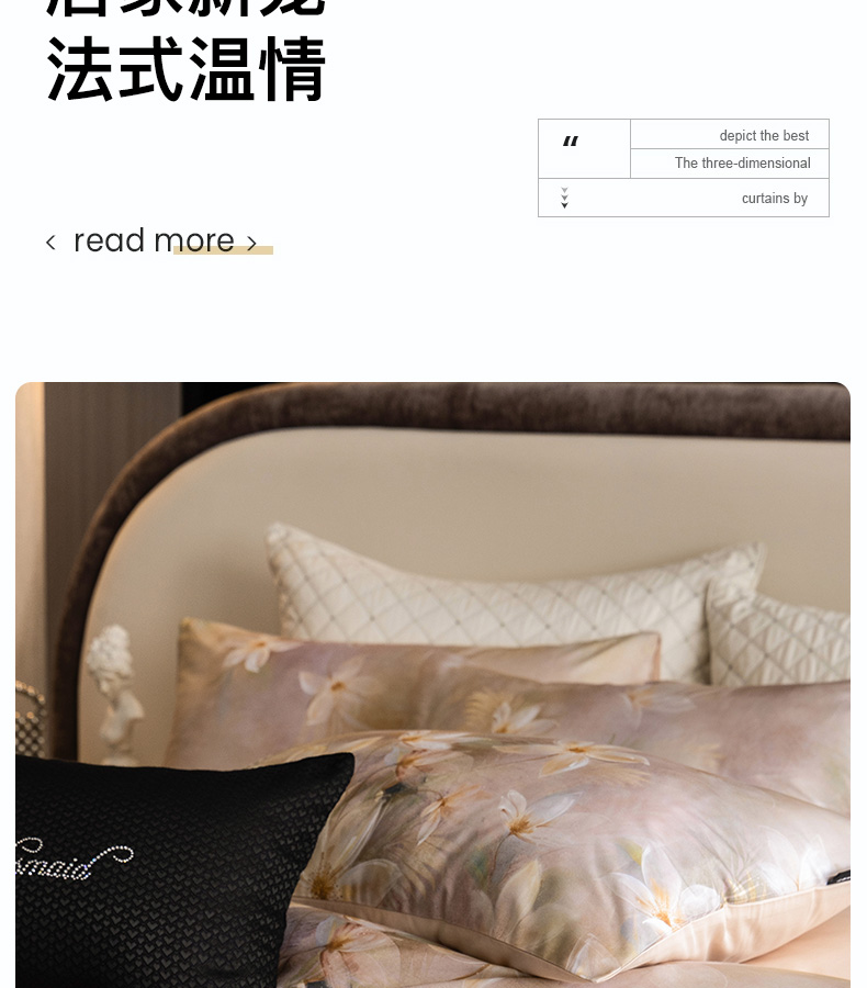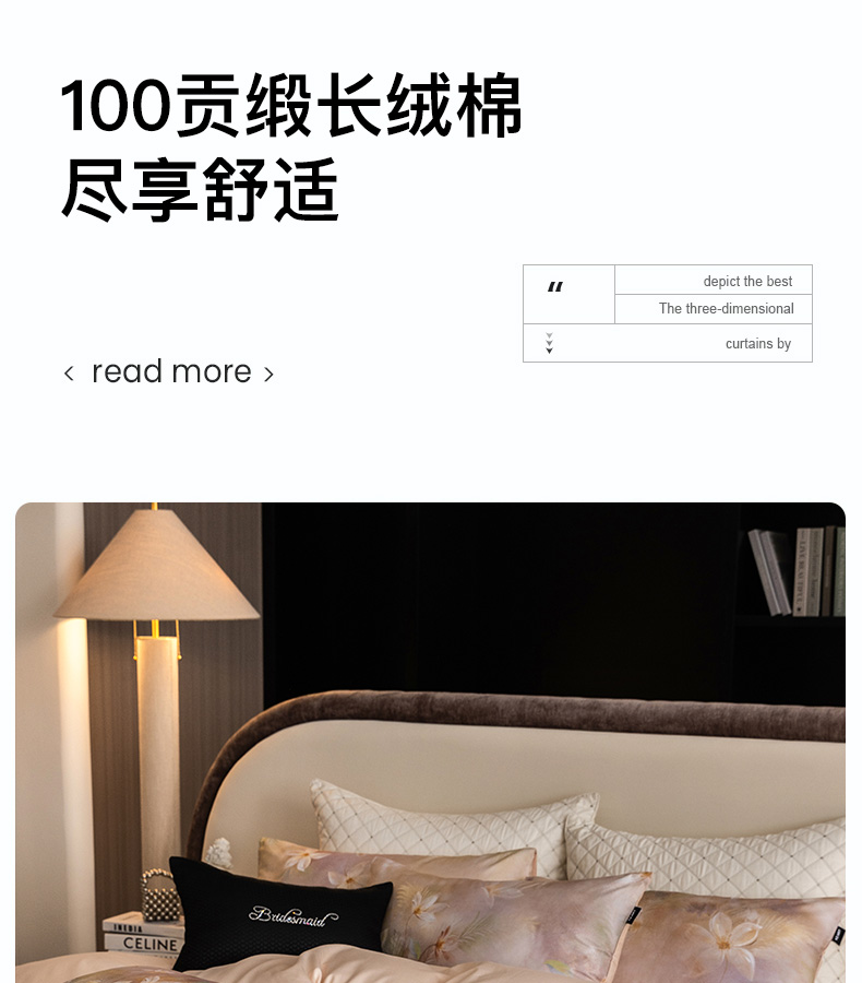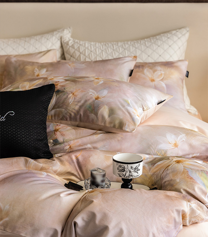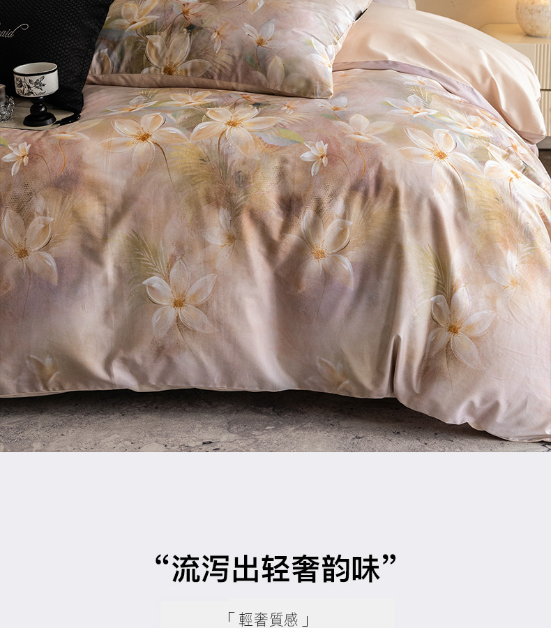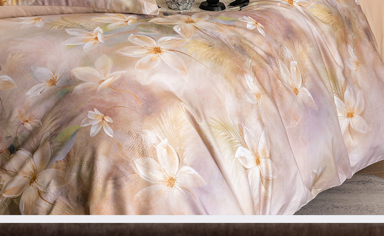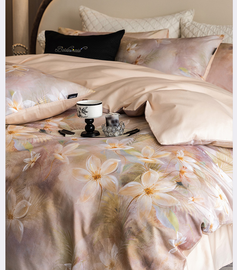 佳汐蓝家纺 2025新款春夏100贡缎长绒棉数码印花四件套 夏薇