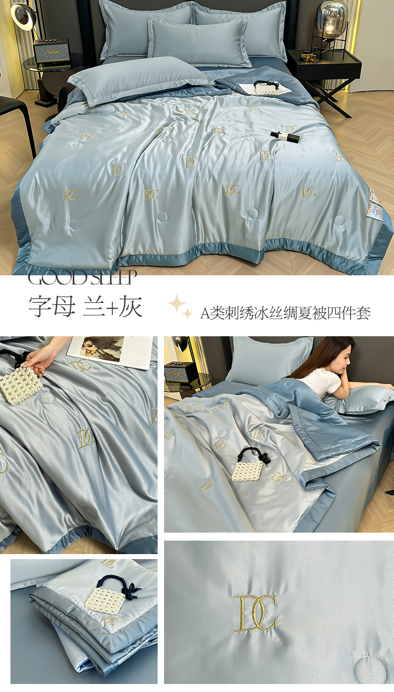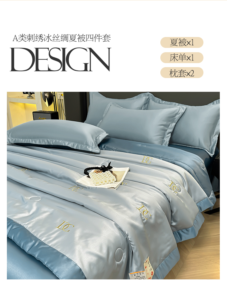 当前位置: 91家纺网 > 商品网购 > 床品套件 > 四件套 > 全棉普通四件套 > 满羽家纺 2025新款水洗冰丝刺绣夏被四件套 花朵奶白绿
