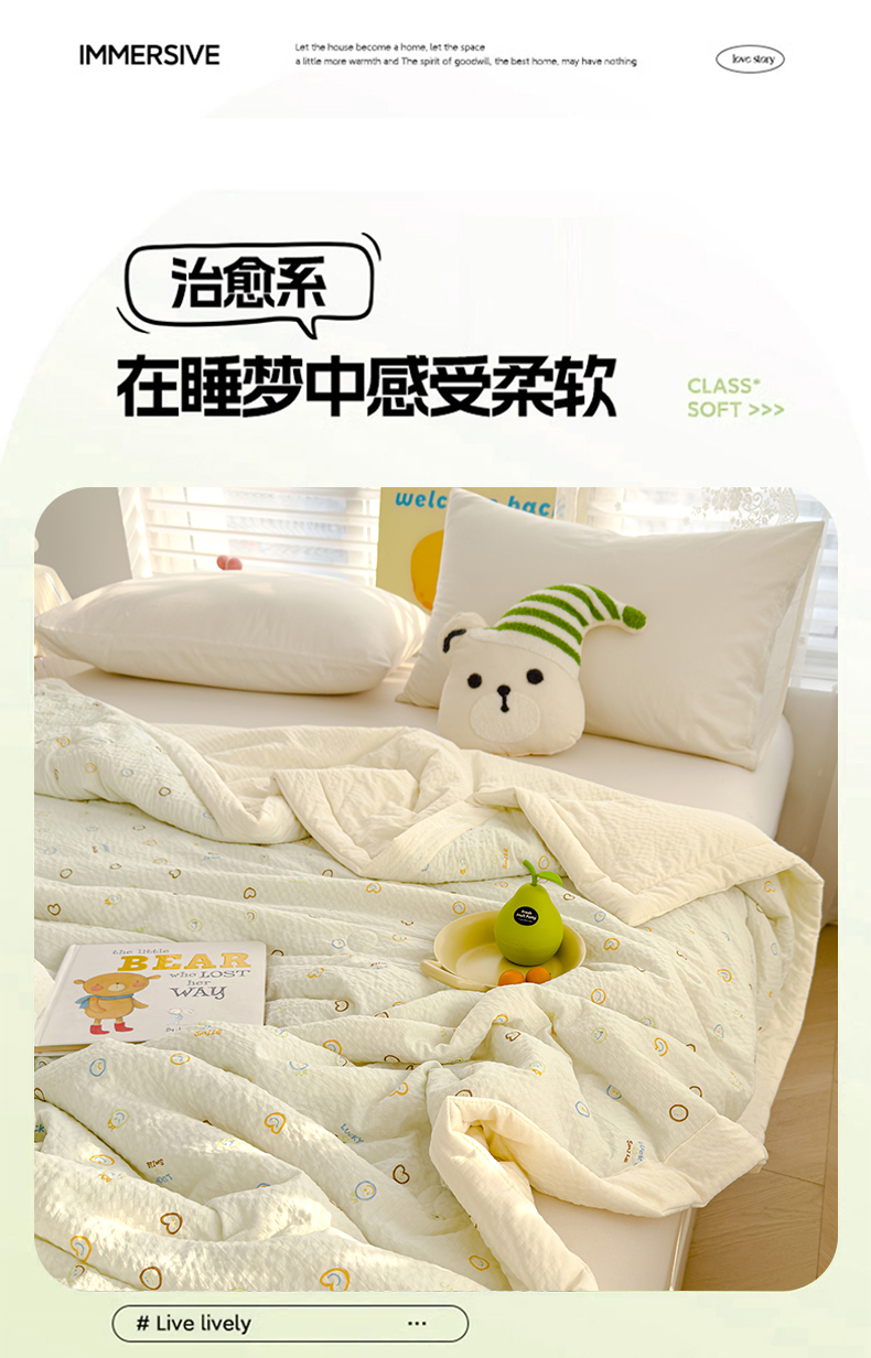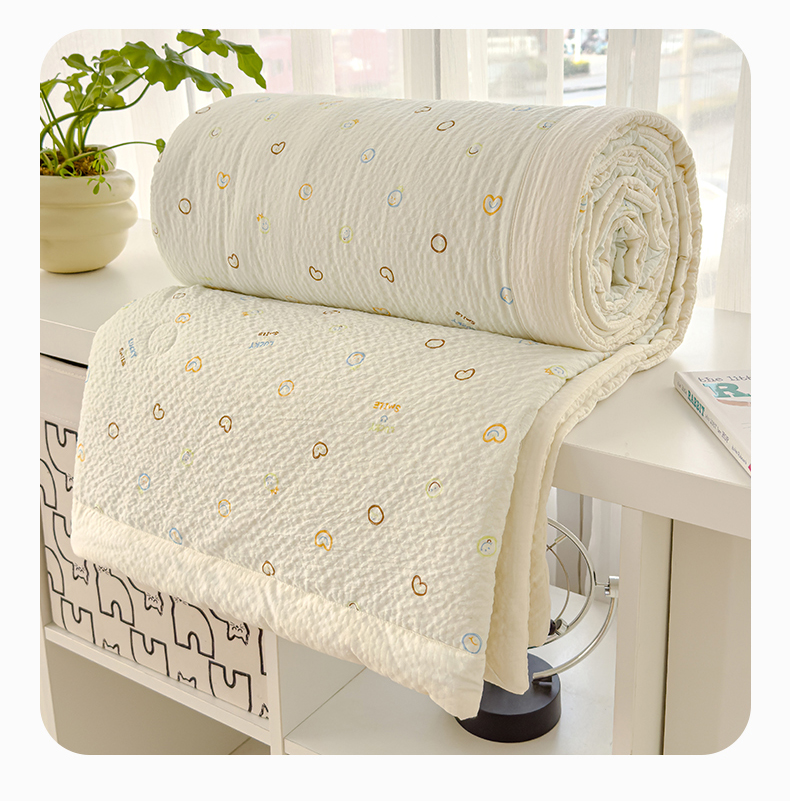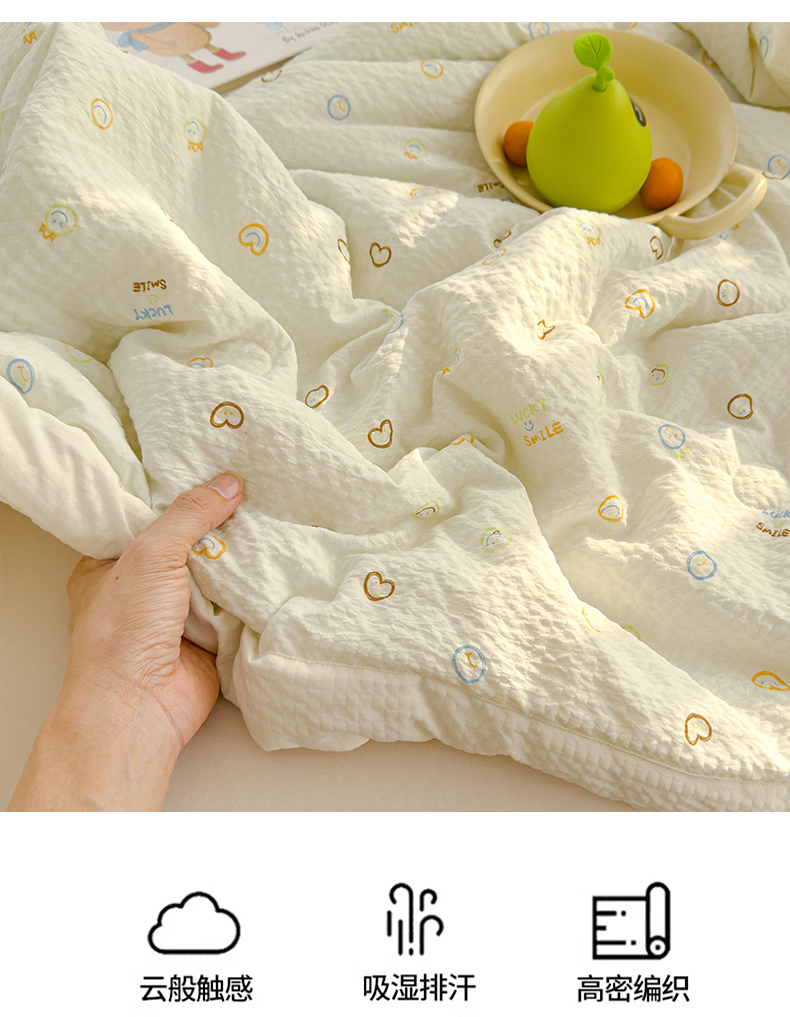 (总)睡棉坊 2025新款A类泡泡棉夏被韩版原创设计刺绣款空调被夏凉被,米白色,浅灰色,浅蓝色,浅玉色,水绿色,香槟色