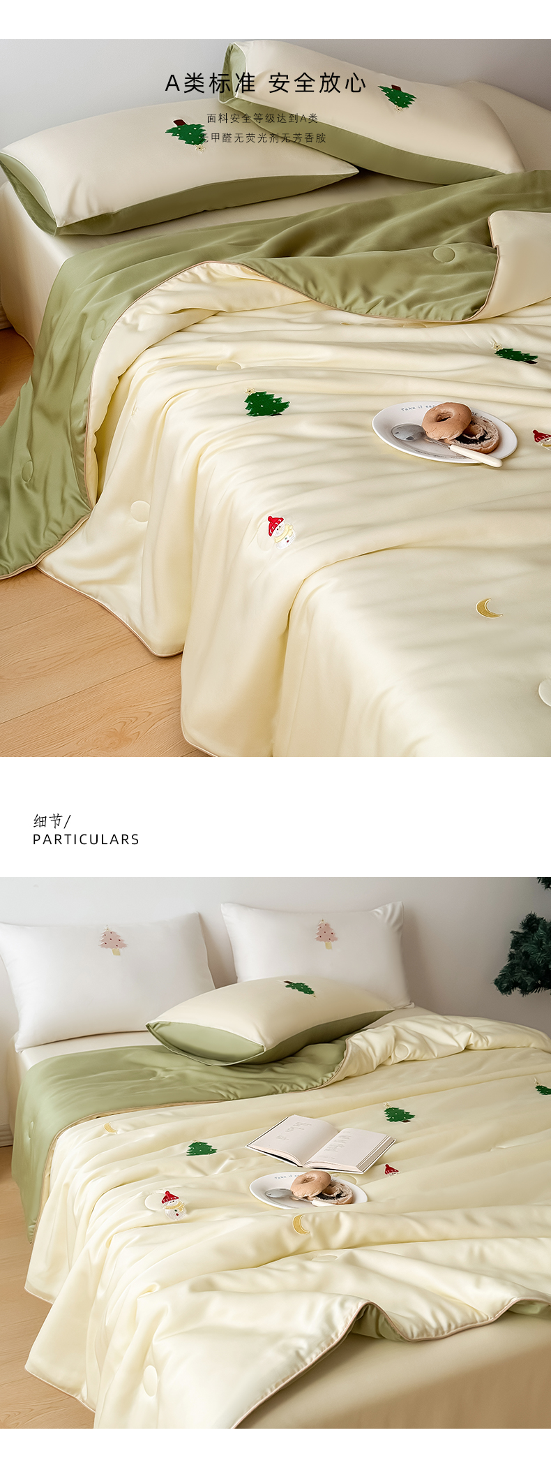 Mr.pig猪先生家纺-2025新款天丝绣花夏被四件套空调被 绿圣诞树