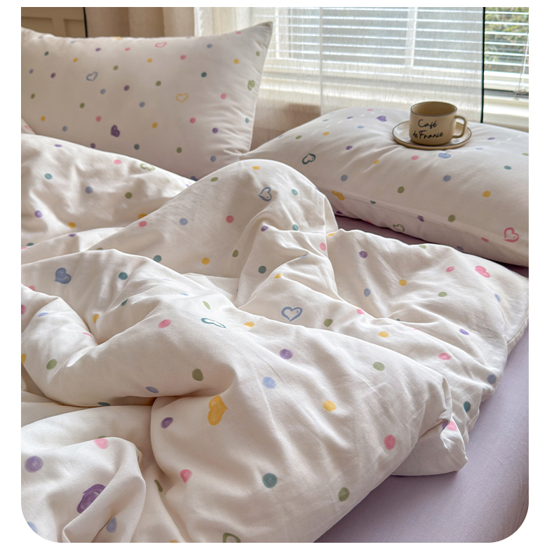 曲之慕2025新款A类母婴级有氧全棉纯棉双层纱印花四件套 彩虹糖
