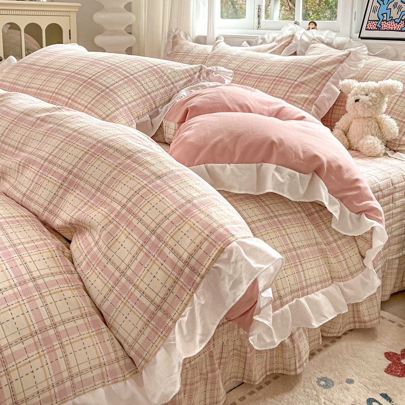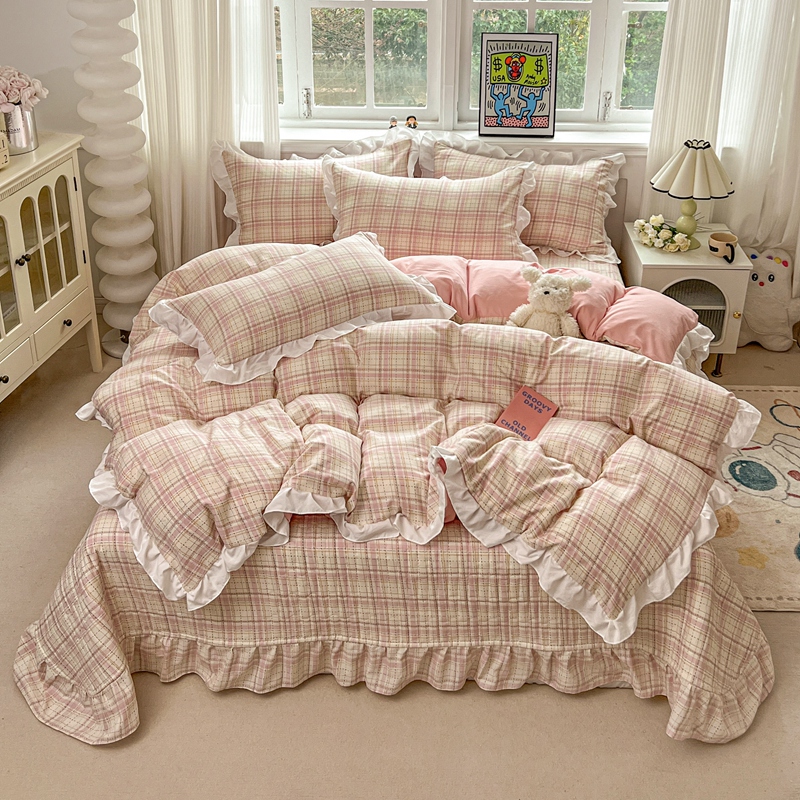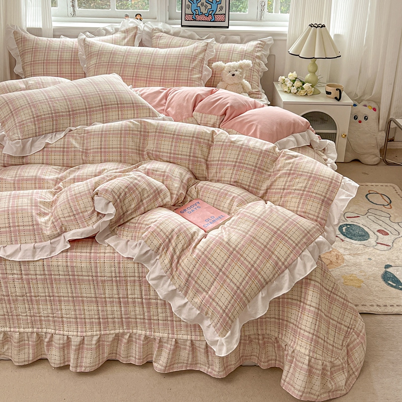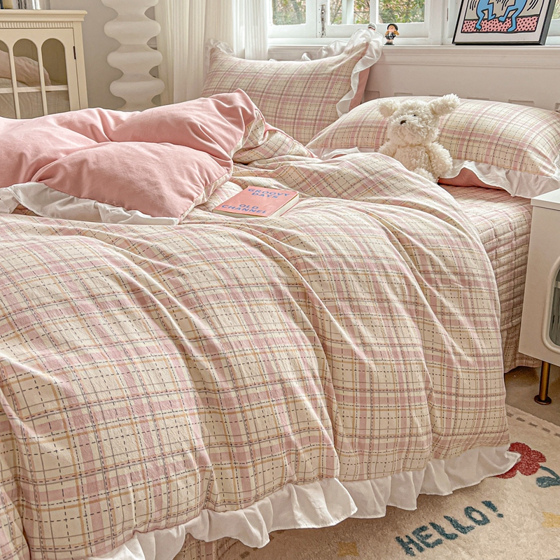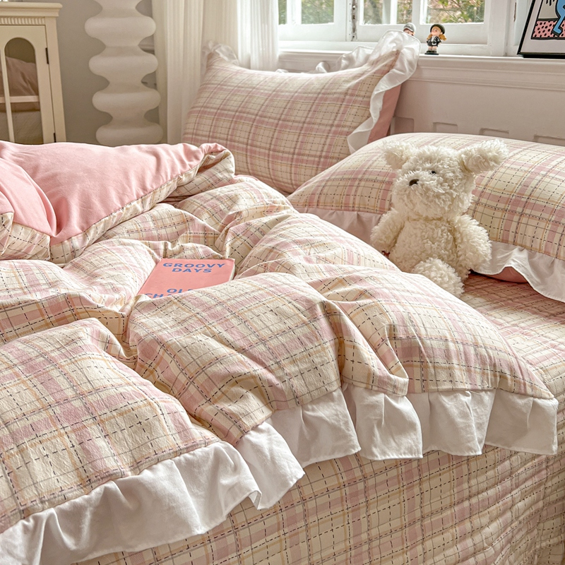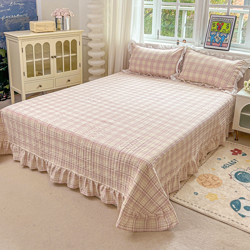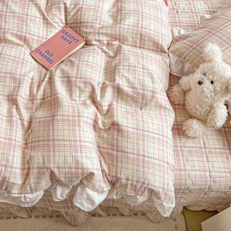 当前位置: 91家纺网 > 商品网购 > 床品套件 > 四件套 > 双层纱四件套 > 麦朵家居2025新款双层纱针织棉床盖款四件套 粉格子