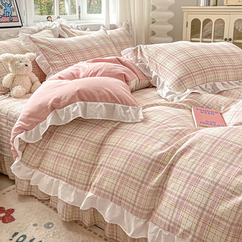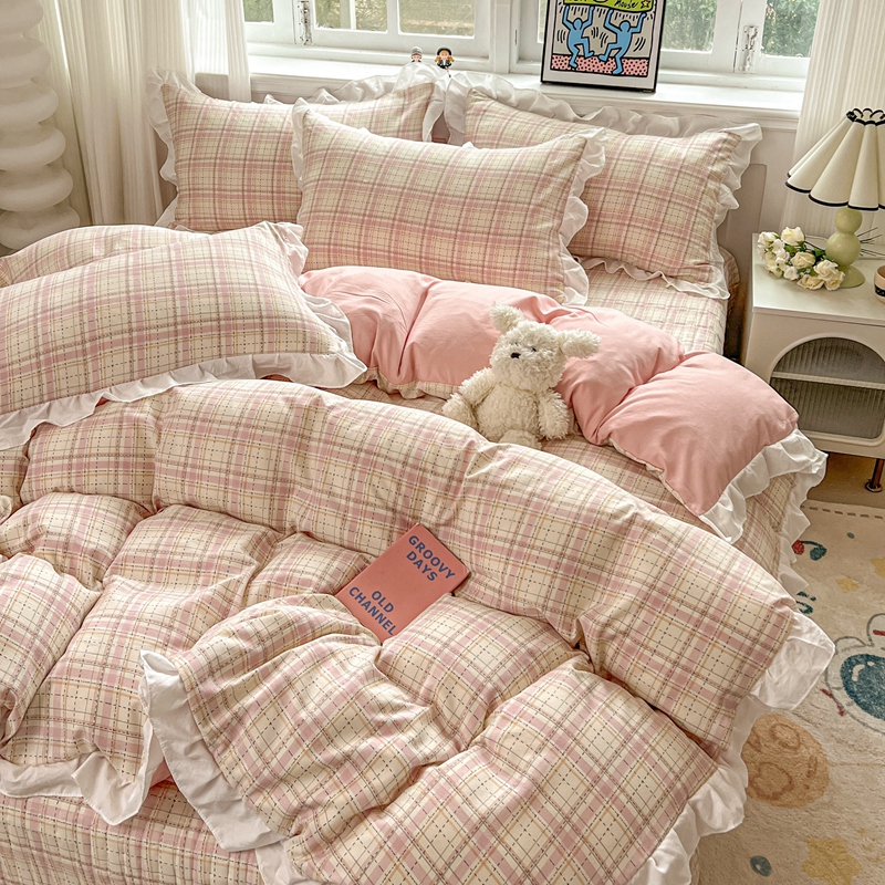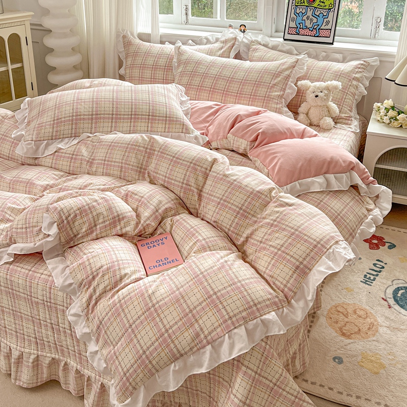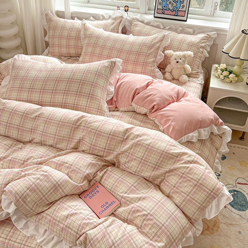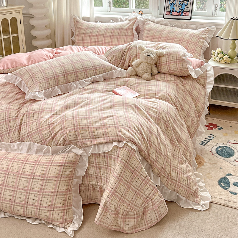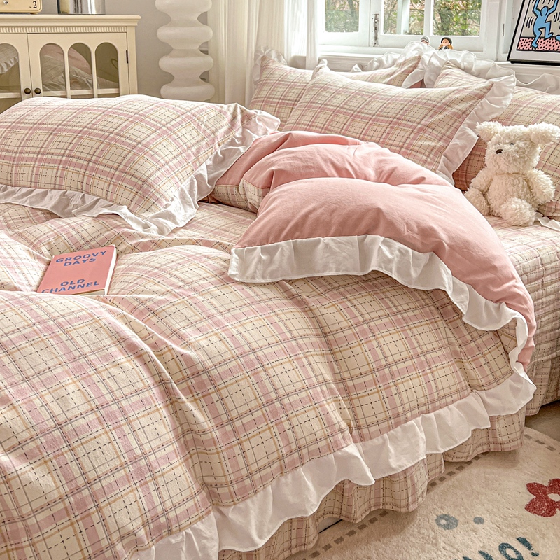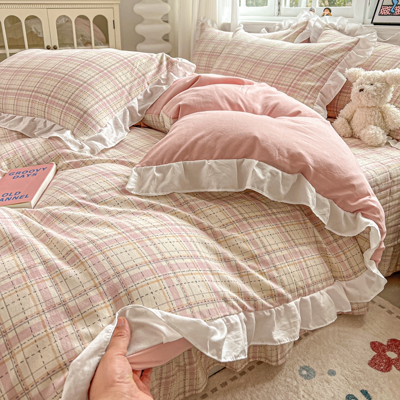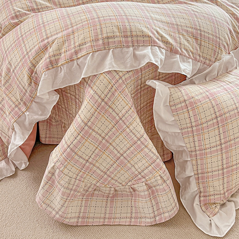当前位置: 91家纺网 > 商品网购 > 床品套件 > 四件套 > 双层纱四件套 > 麦朵家居2025新款双层纱针织棉床盖款四件套 粉格子