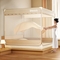 青竹苑 2025新款无印字母三门坐床床笠底防摔蚊帐 米杏