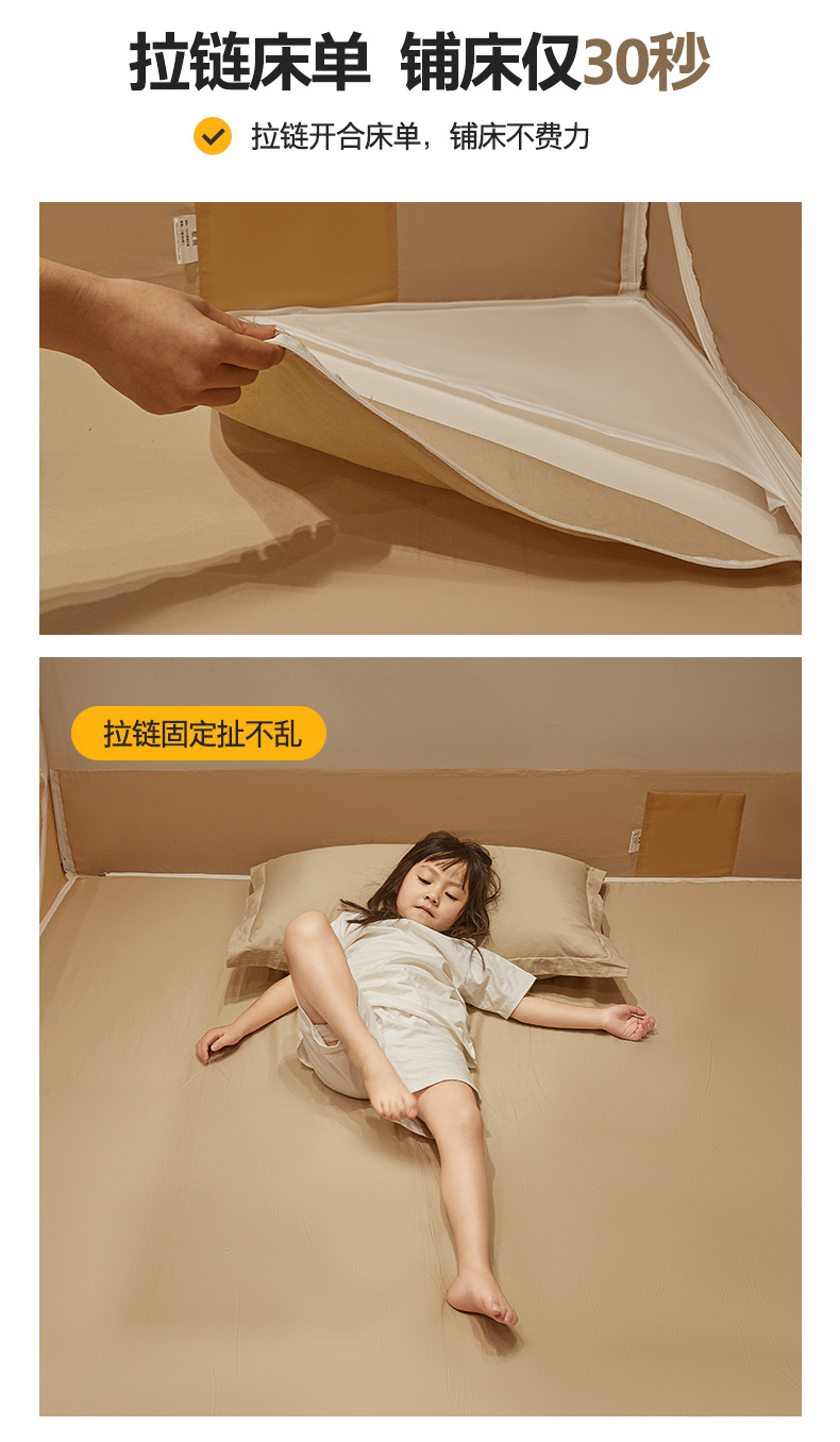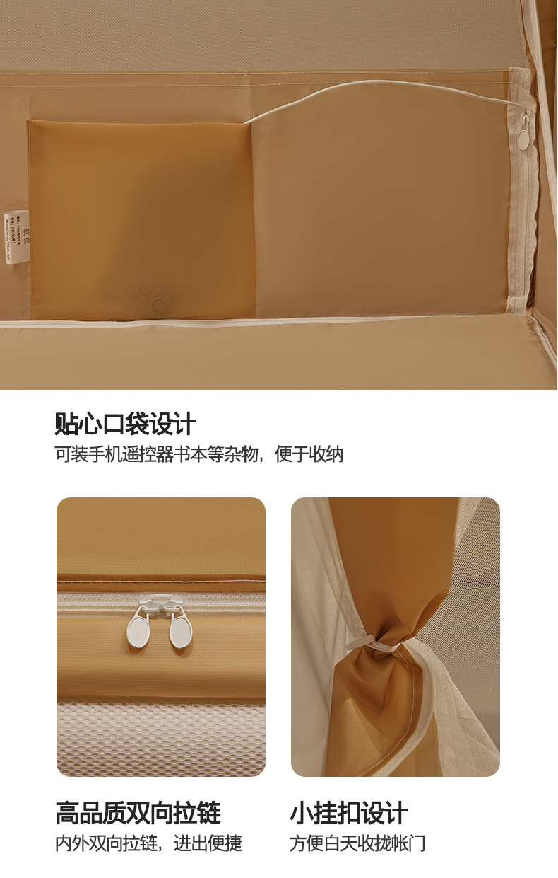 • 91家纺网 家纺一手货源 找家纺 青竹苑 2025新款无印字母三门坐床床笠底防摔蚊帐 米杏