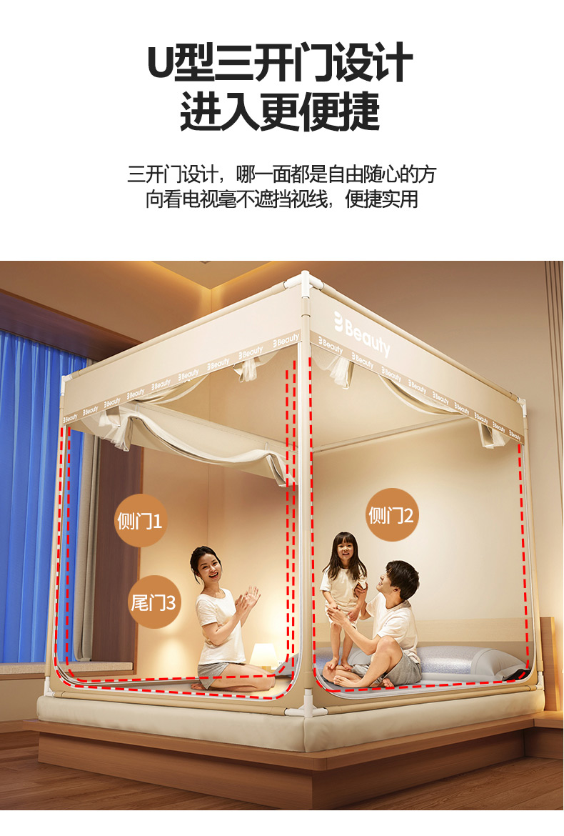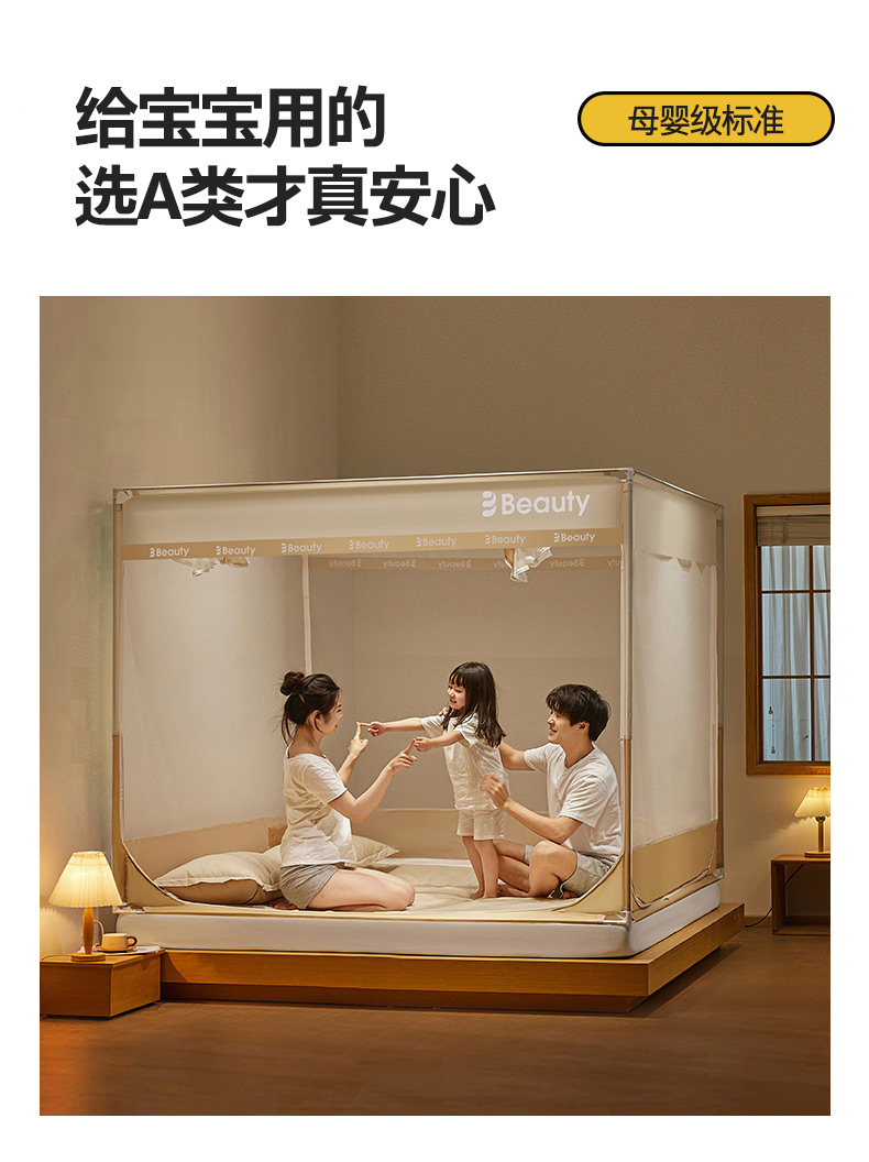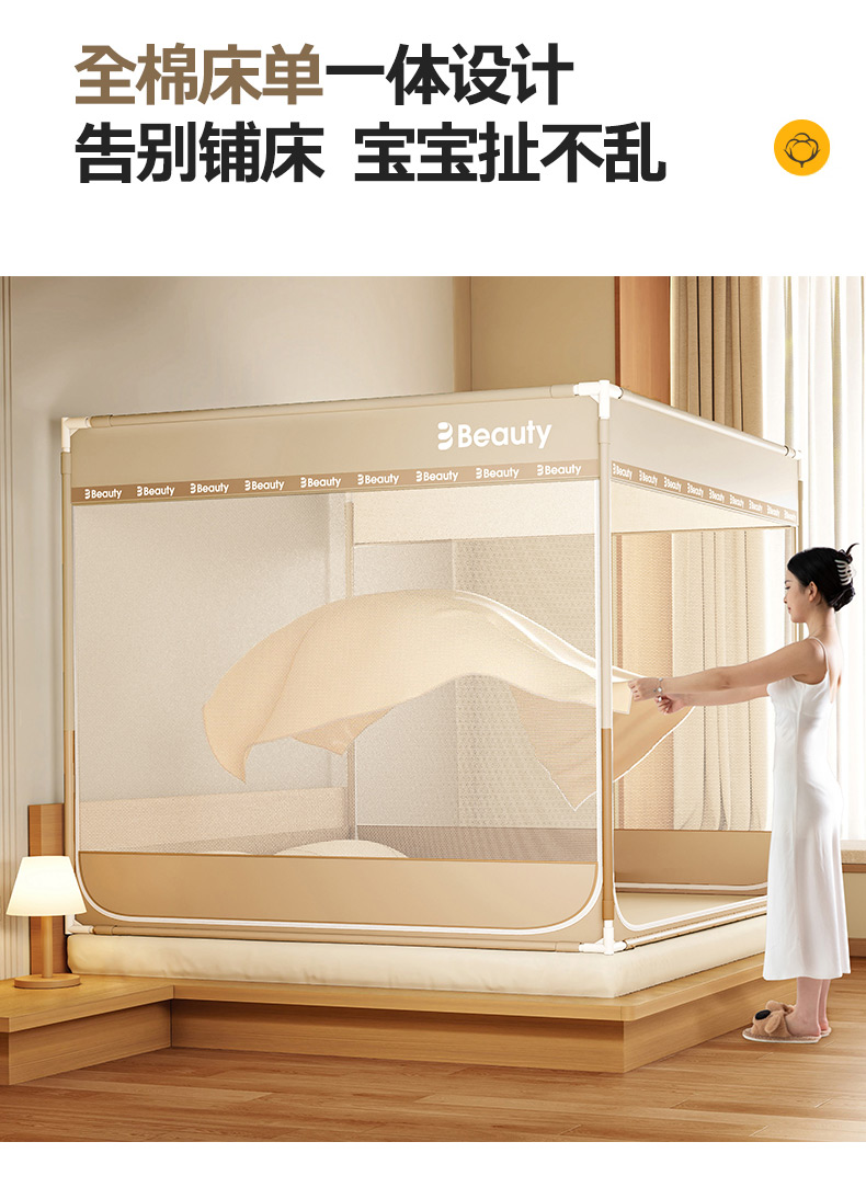 当前位置: 91家纺网 > 商品网购 > 床上用品 > 蚊帐 > 青竹苑 2025新款无印字母三门坐床床笠底防摔蚊帐 米杏