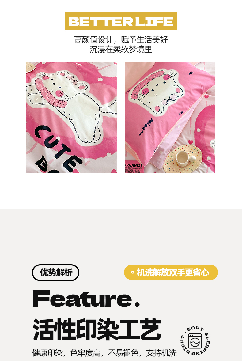 当前位置: 91家纺网 > 商品网购 > 床品套件 > 四件套 > 全棉普通四件套 > 花言狐语 2025新款全棉13372卡通大版数码印花四件套(提供买家秀) 爱心猫