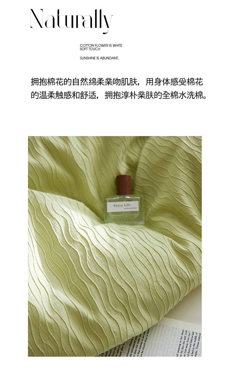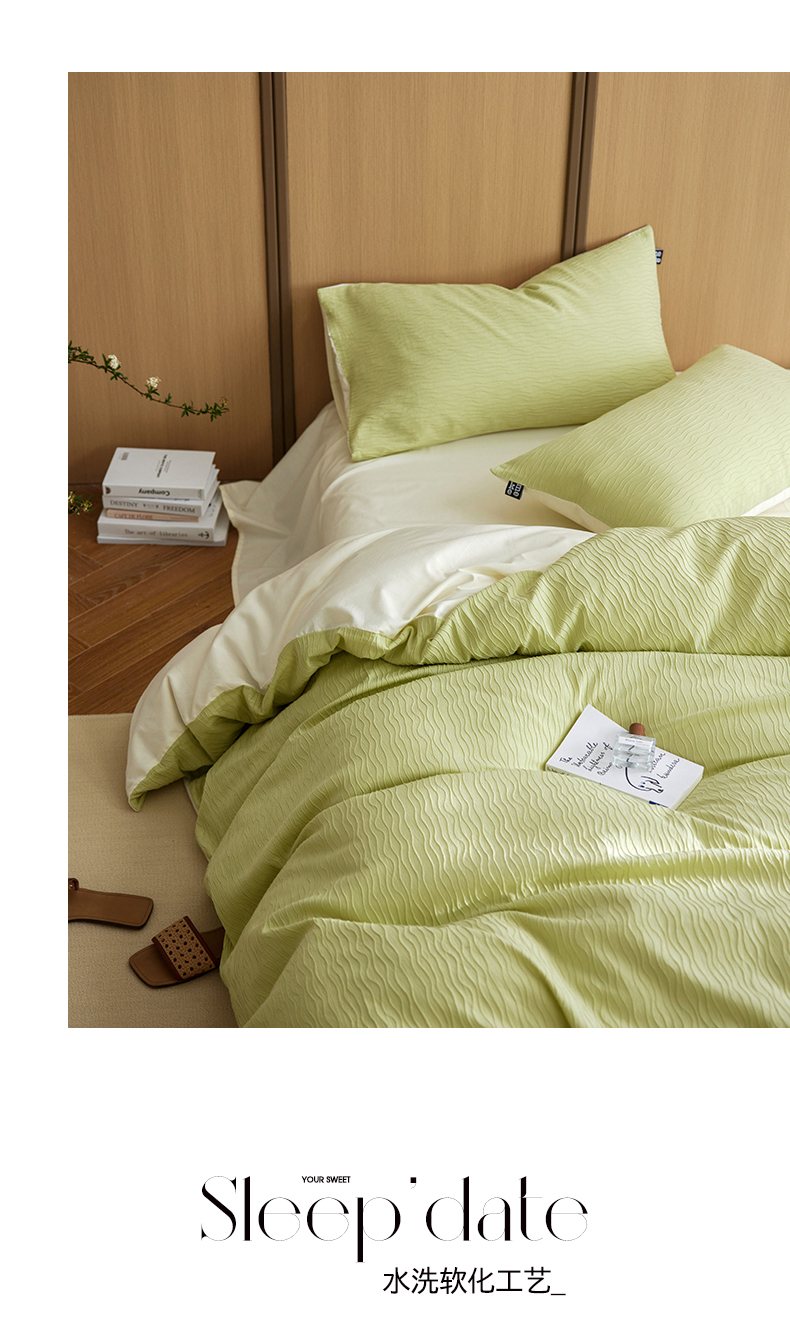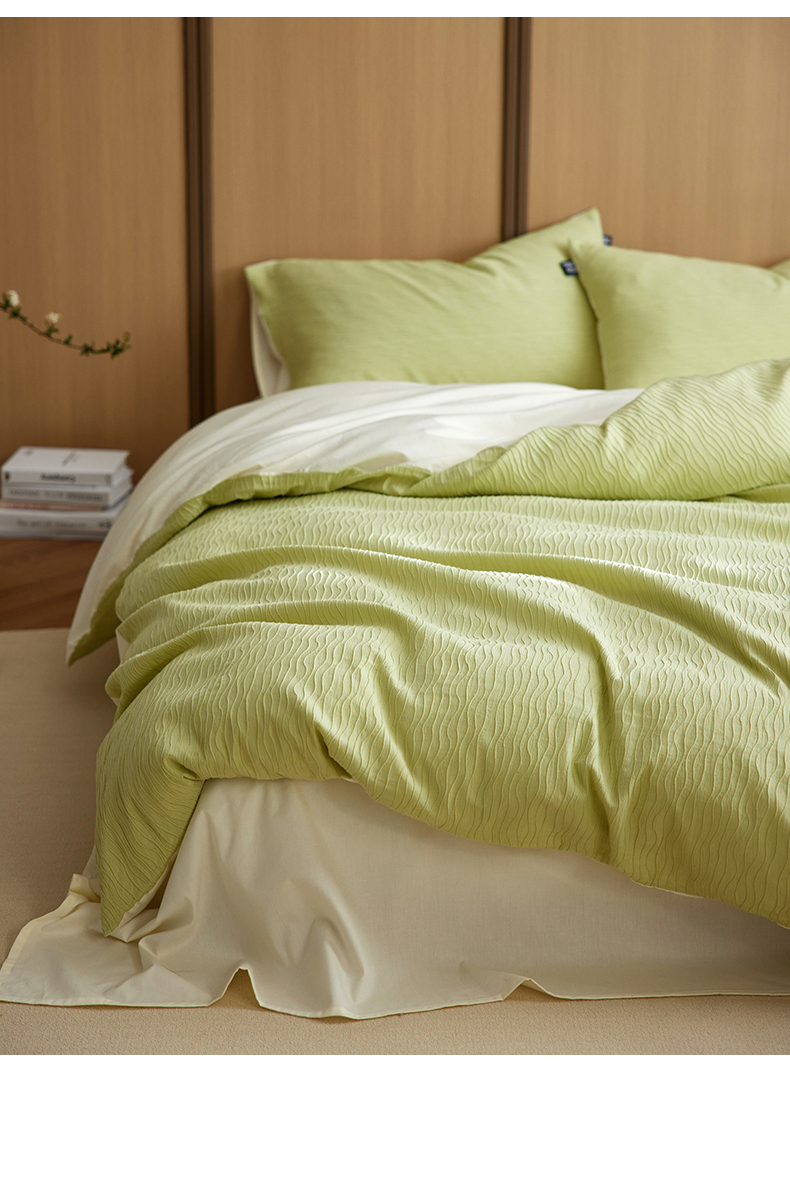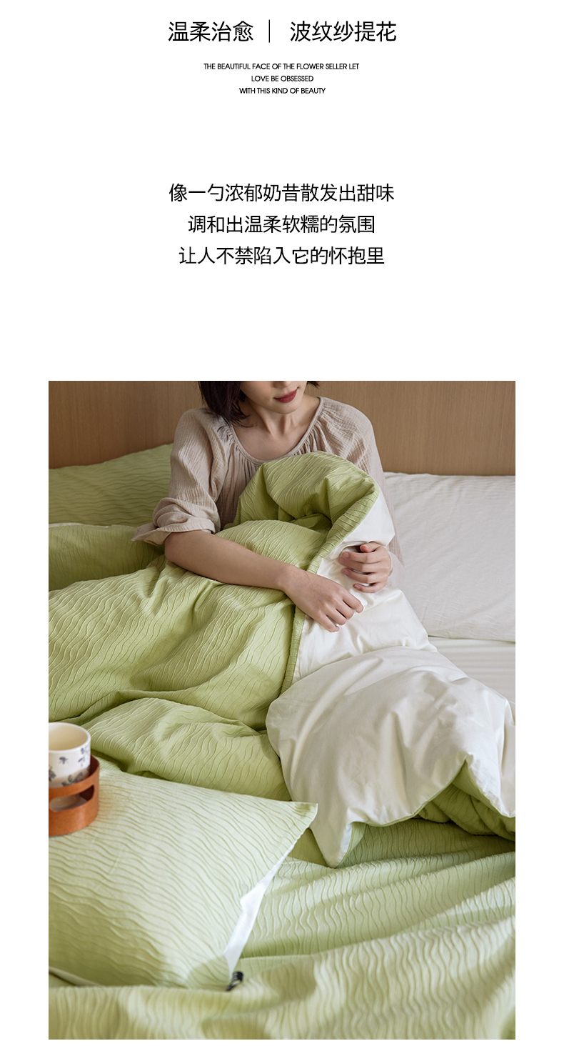 当前位置: 91家纺网 > 商品网购 > 床品套件 > 四件套 > 全棉普通四件套 > 风向标家纺 2025新款全棉波纹纱提花原木风四件套 波纹纱-心漾绿