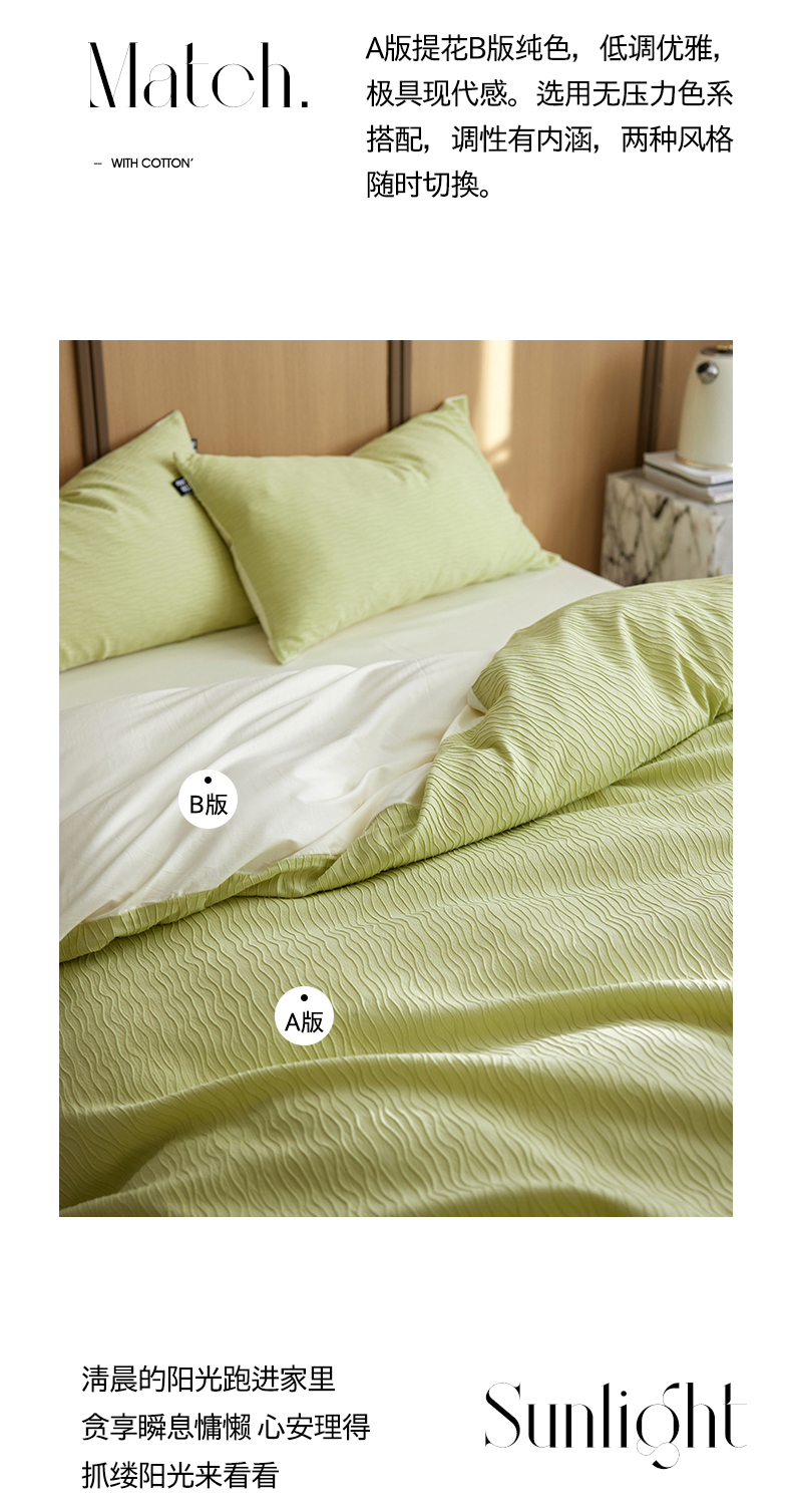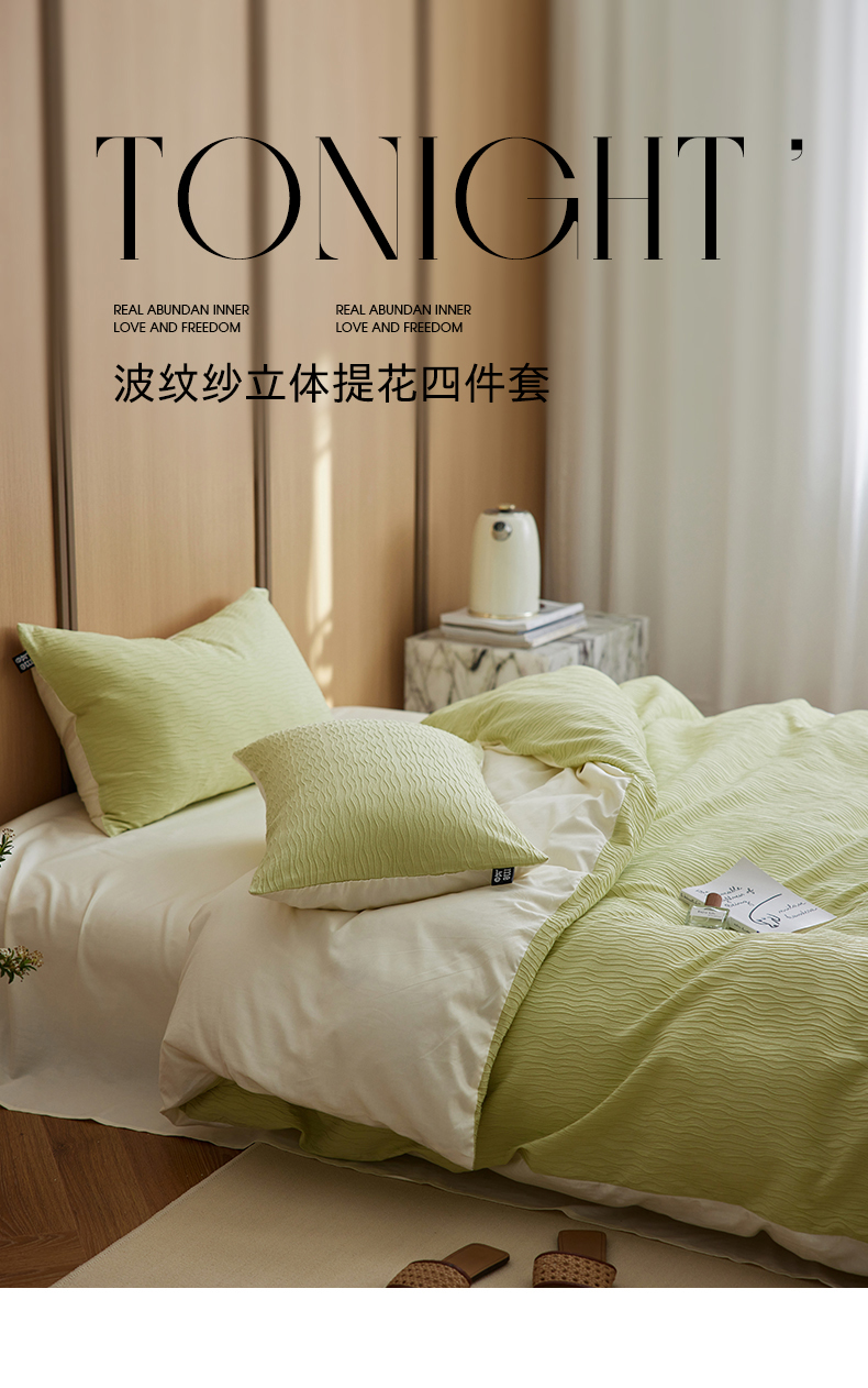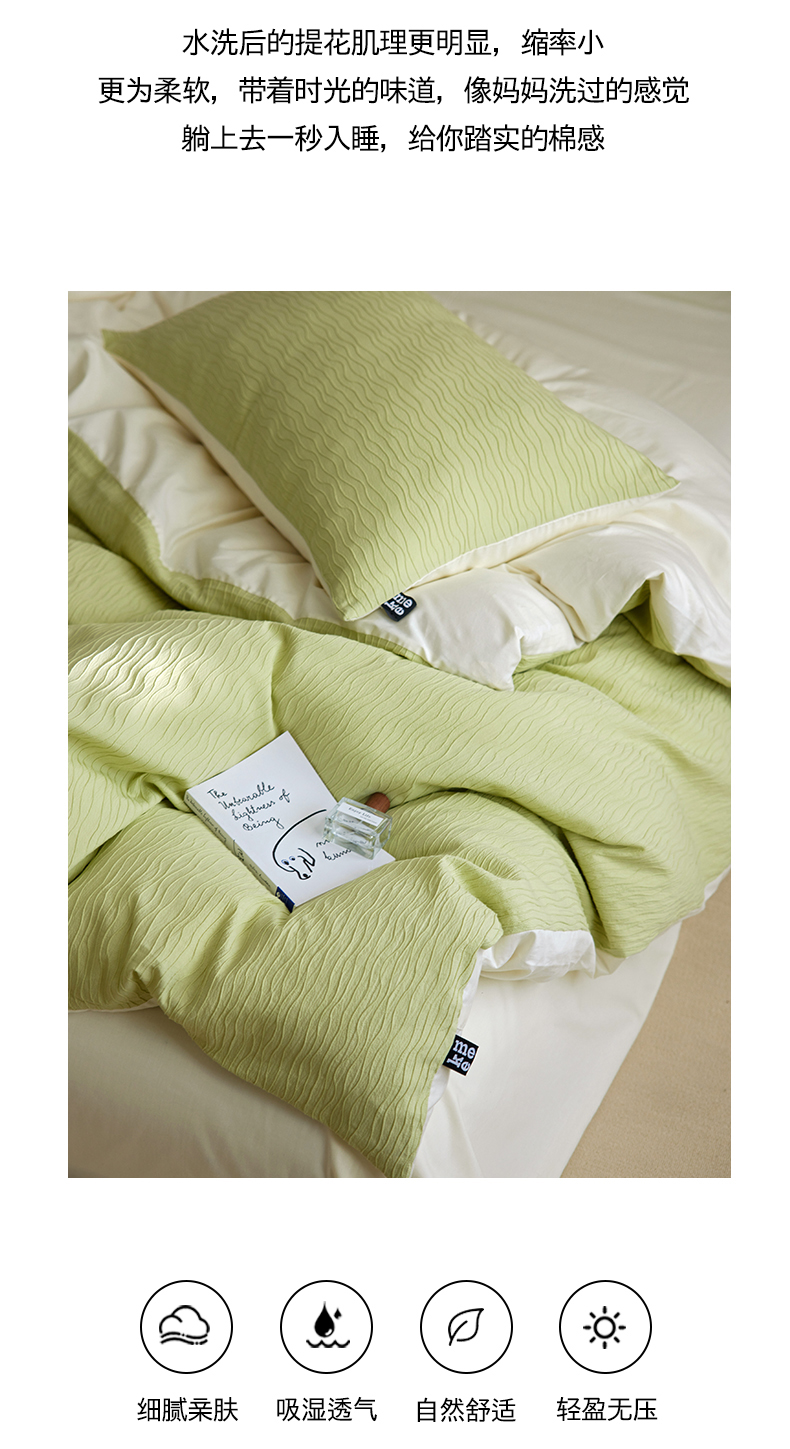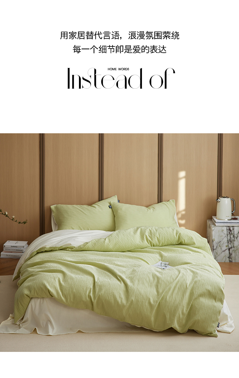 当前位置: 91家纺网 > 商品网购 > 床品套件 > 四件套 > 全棉普通四件套 > 风向标家纺 2025新款全棉波纹纱提花原木风四件套 波纹纱-心漾绿