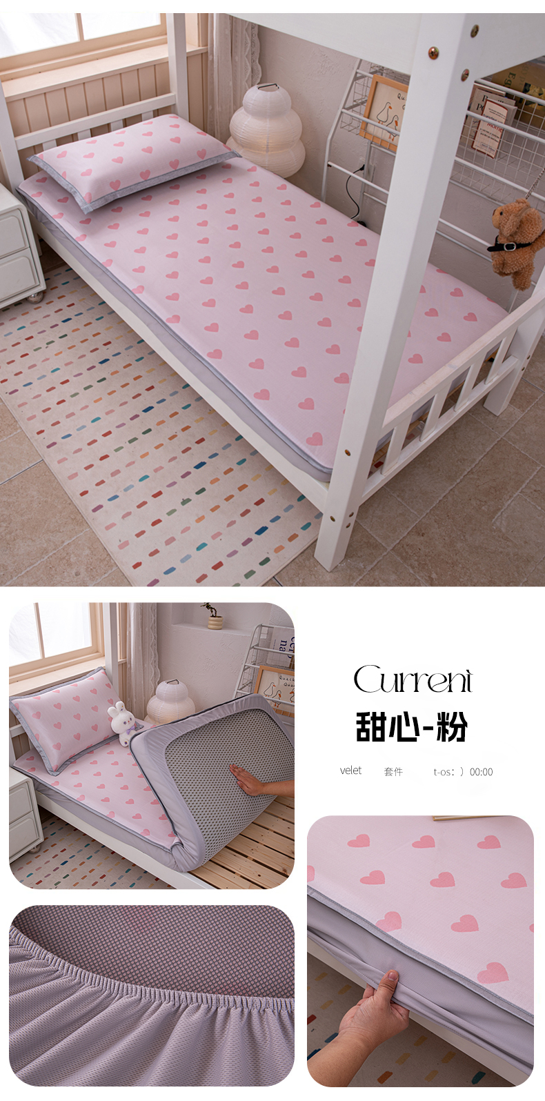 商品名称:凌云家纺 2025新款提花凉感冰丝席床笠款三明治凉席三件套 甜心-粉