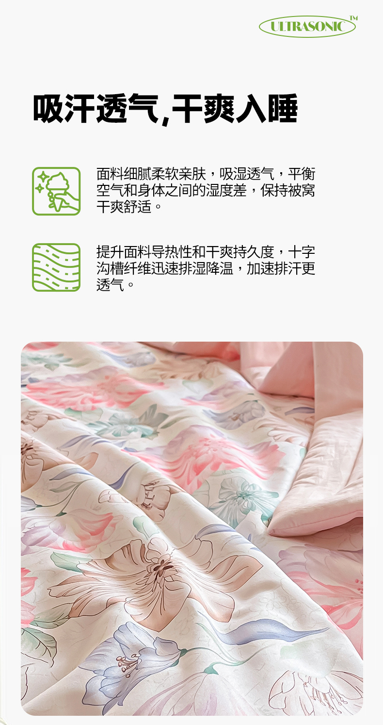 宝士康家纺 2026新款10A抗菌水洗棉超声波压花夏被 被子被芯 春风十里