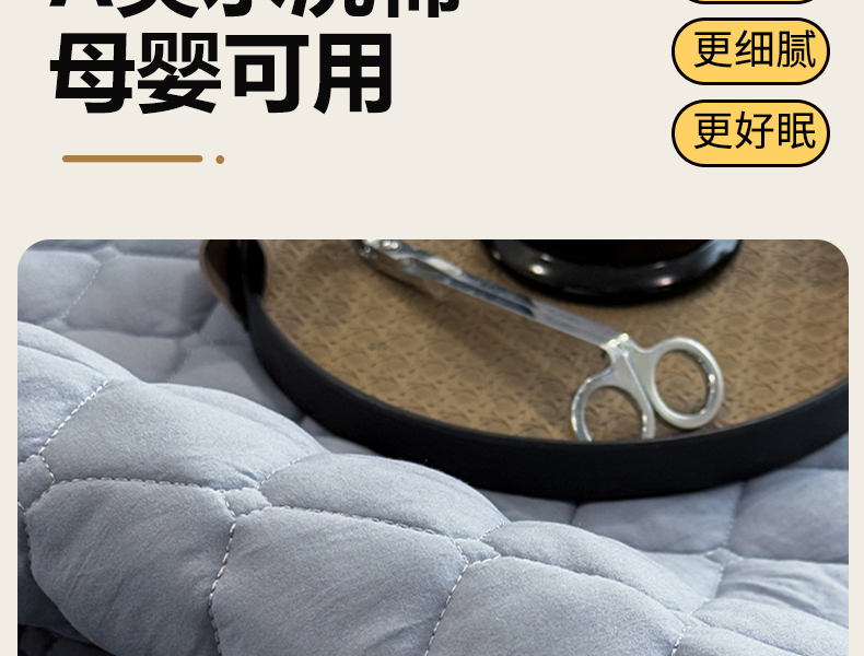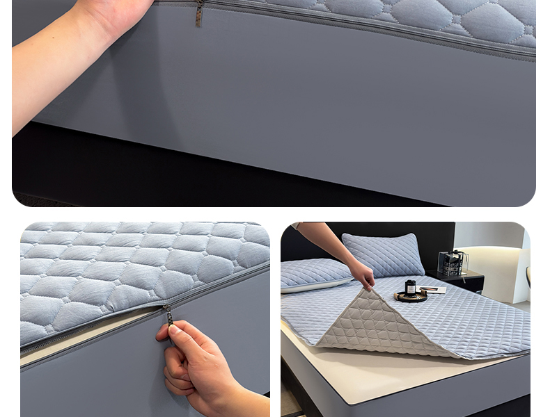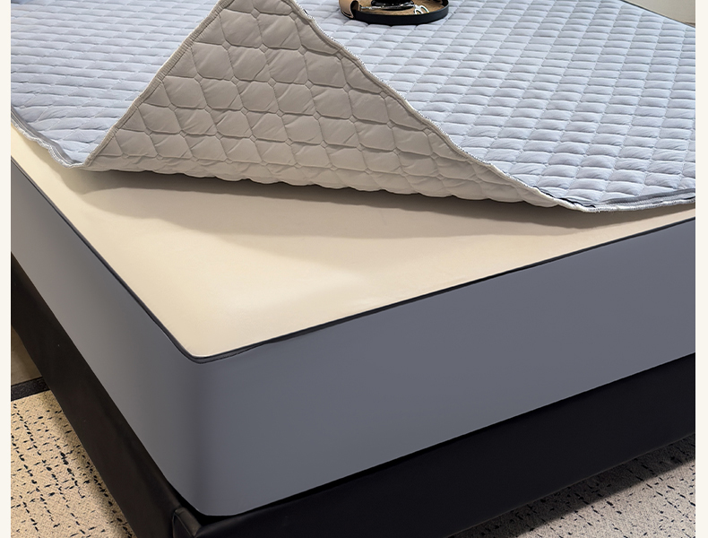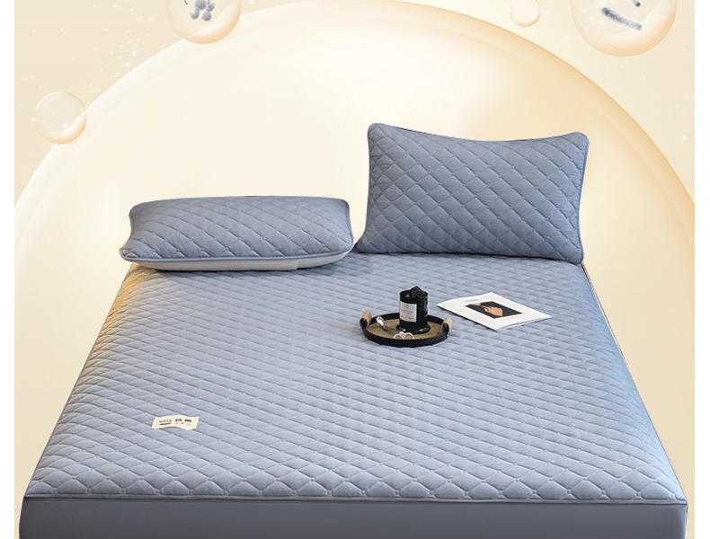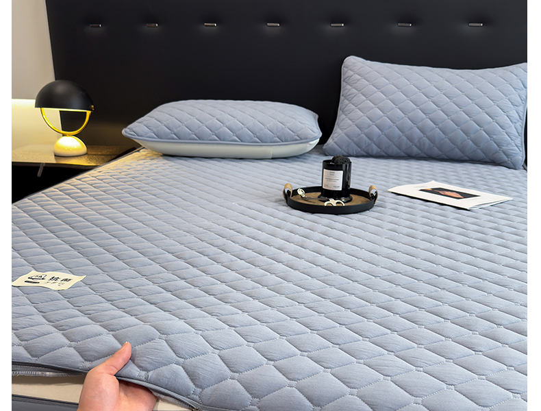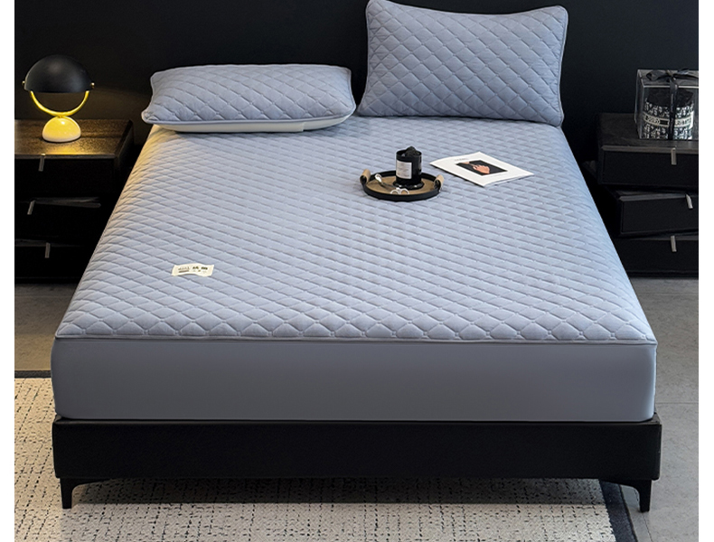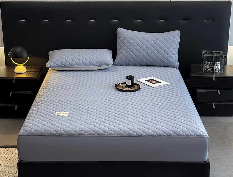 • 91家纺网 家纺一手货源 找家纺 叠派家纺 2025新款5A抗菌A类夹棉床笠经典款防水款系列 月光灰-小格子经典款