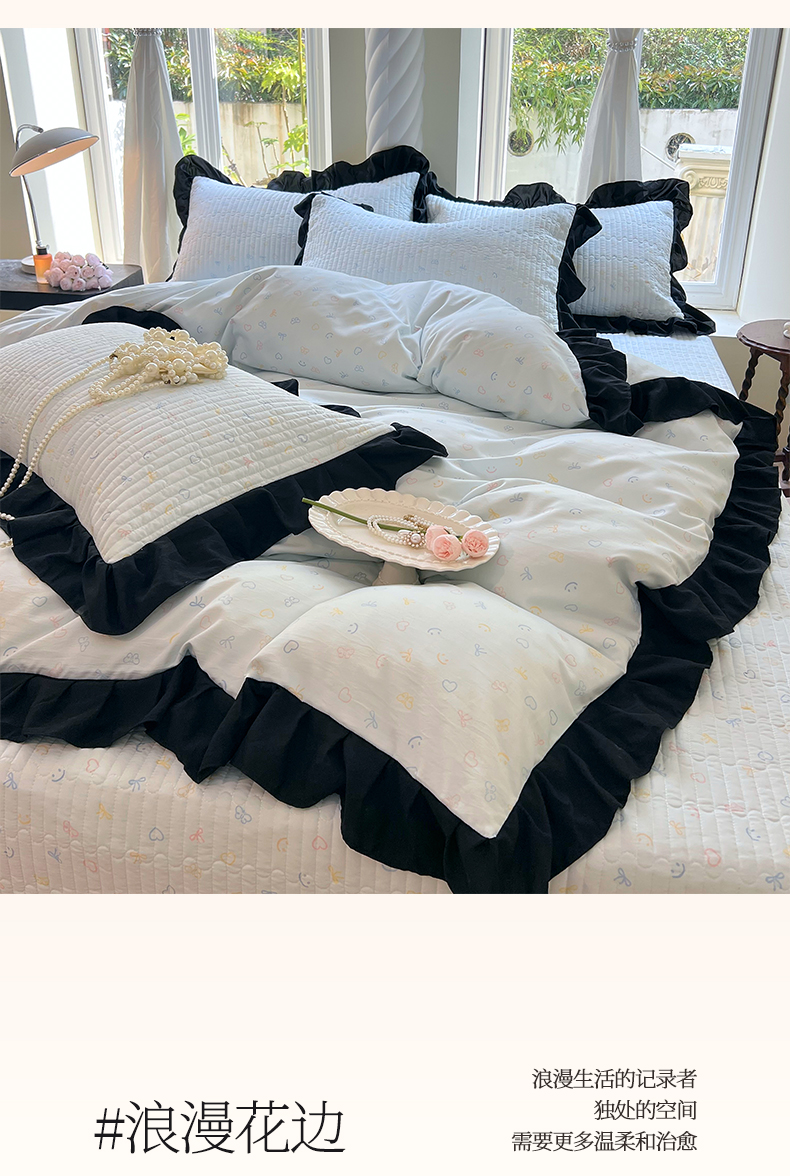 (总)慕希 2025新款水洗棉花边夹棉床盖款四件套,赫本-爱心白,赫本-蝴蝶结粉,赫本-可可玉,赫本-奶味蓝,赫本-柔光蓝,赫本-奶油白